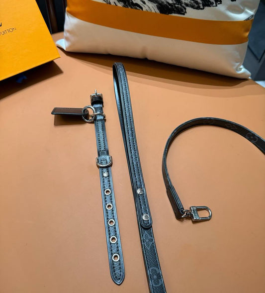 LV DOG COLLAR AND LEASH (BOWTIE)