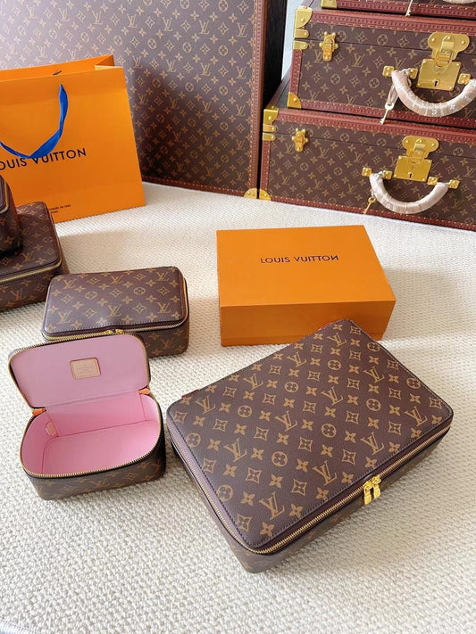 CUSTOM LV MAKE UP 3 IN 1 POUCH SET (BROWN INTERIOR)