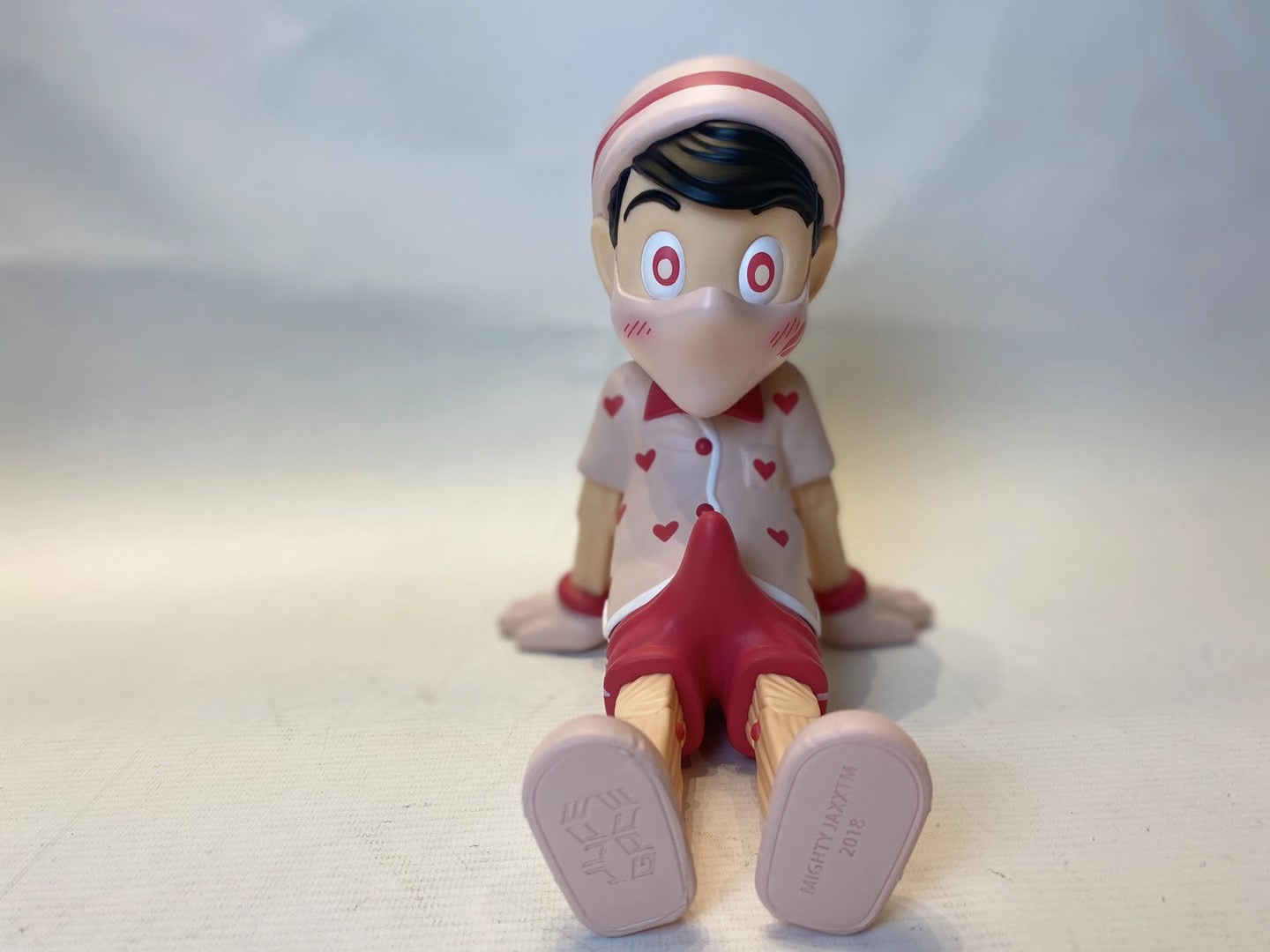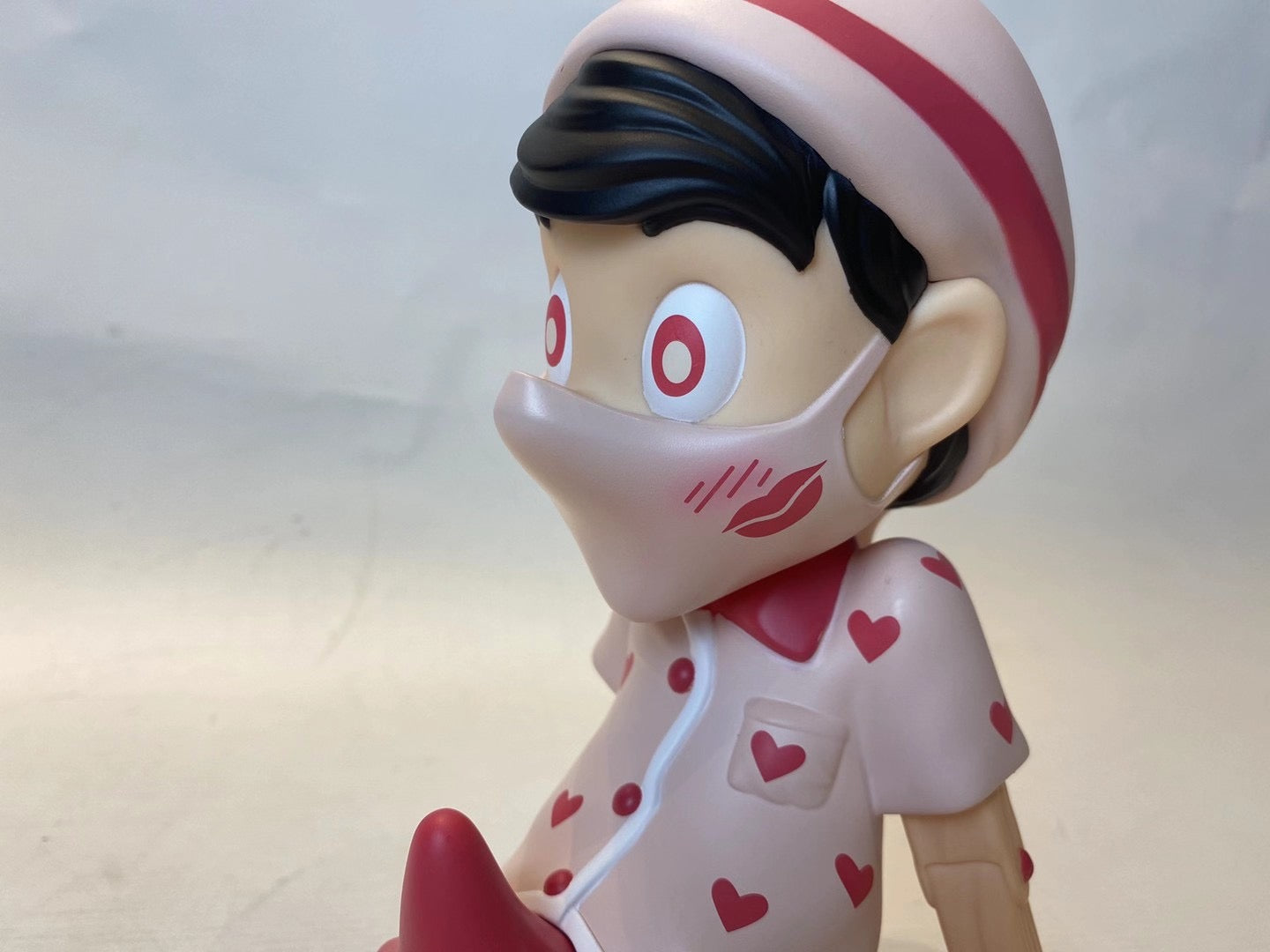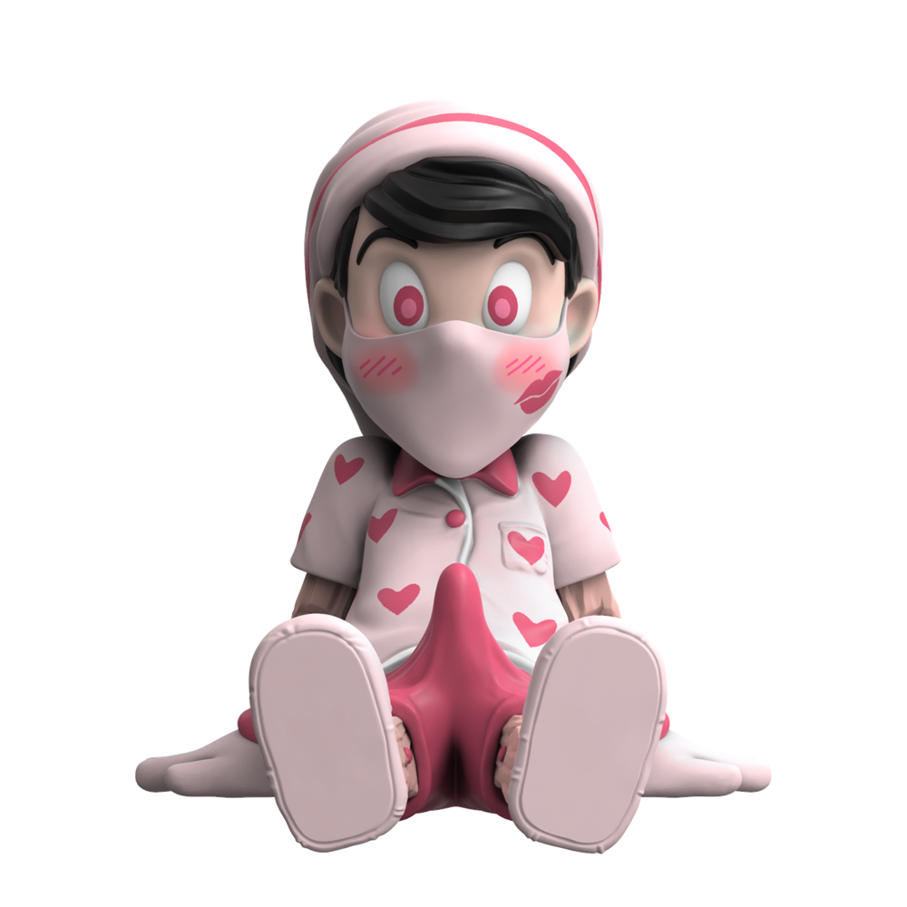 With Valentine’s in the air, the First Kiss Edition features a pink-on-pink design. In a sign of the times, the love novice wears his first kiss and his embarrassment on his matching face mask.