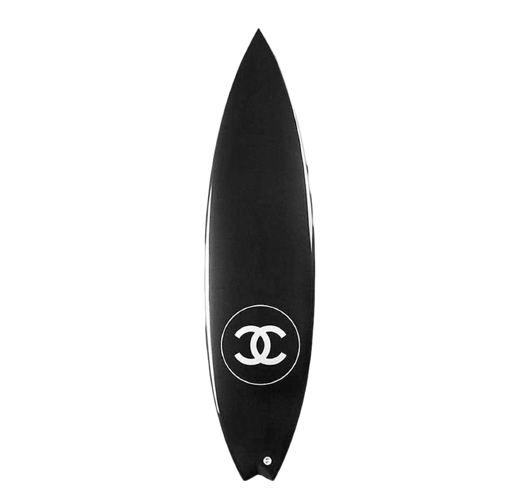 CHANEL SURFBOARD is now available, featuring its iconic logo, allowing you to flex while you surf. Or you can simply put this at home for display.