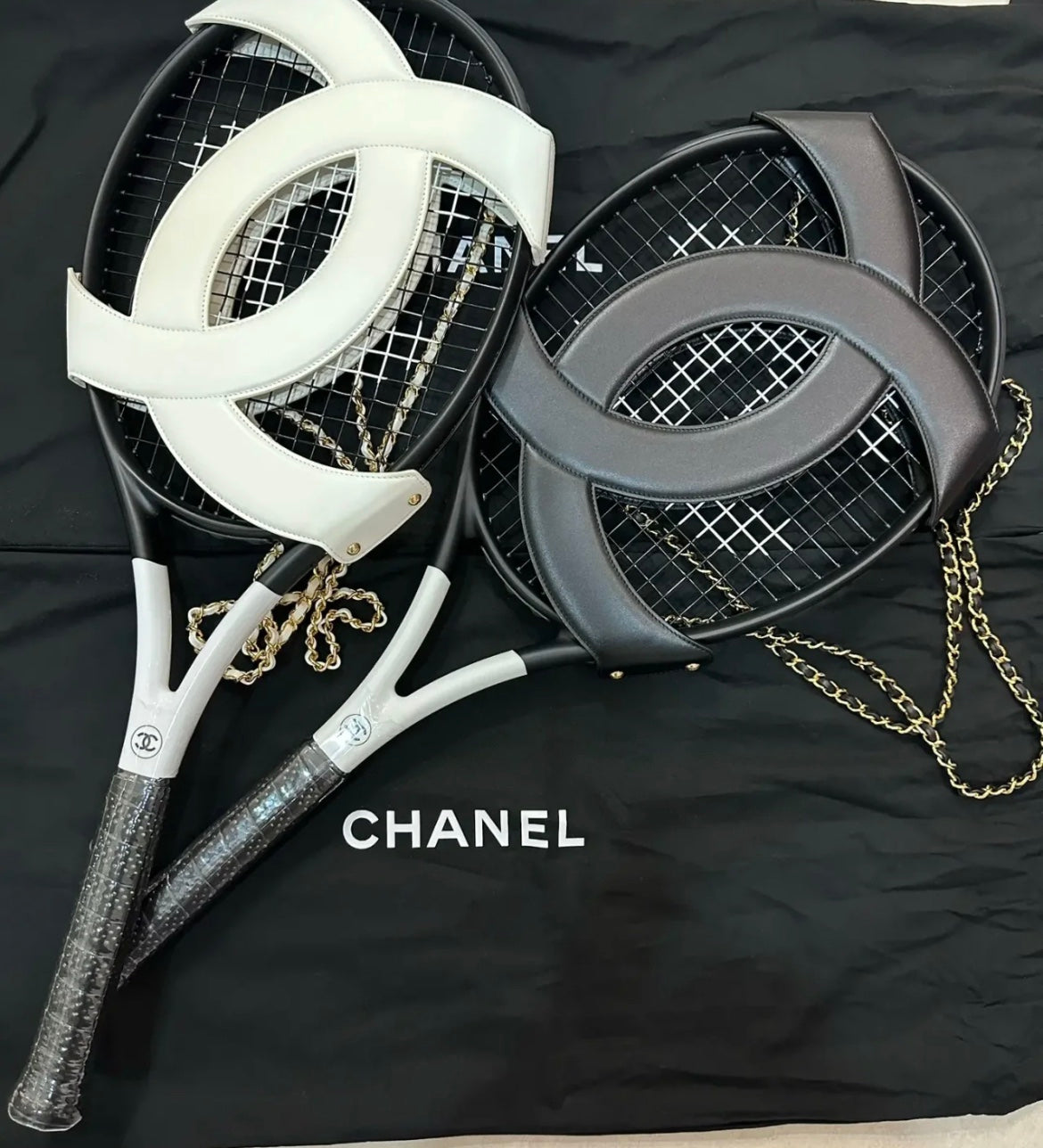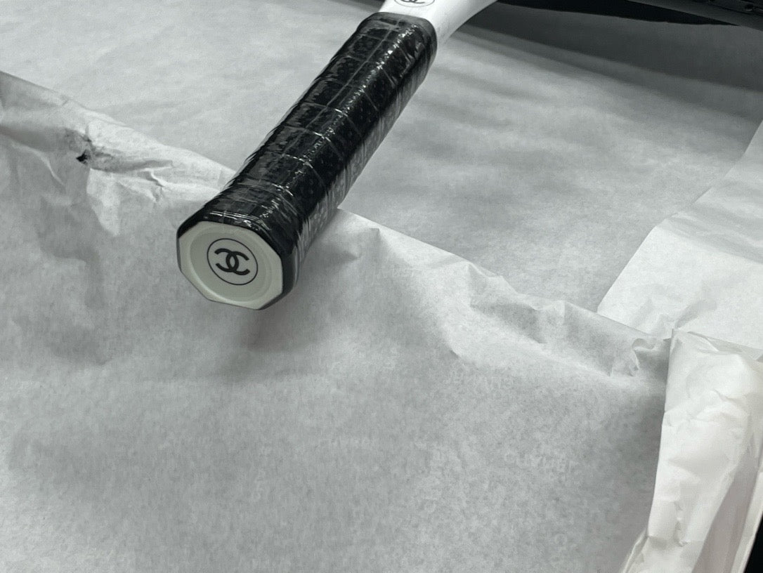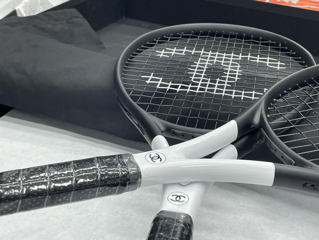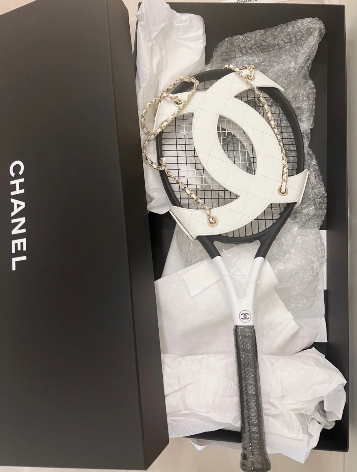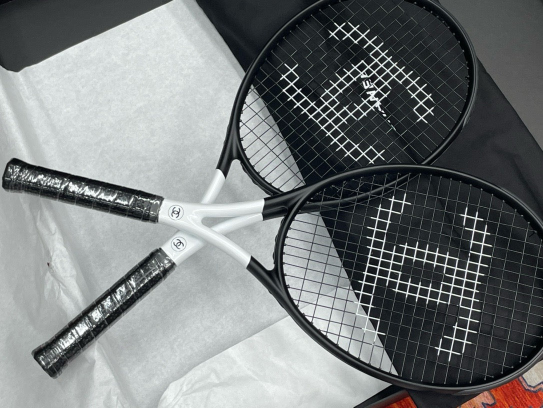 CHANEL TENNIS RACKETS WITH LEATHER CASE is now available, featuring its iconic logo, allowing you to flex in court. Or you can simply put this at home for display.