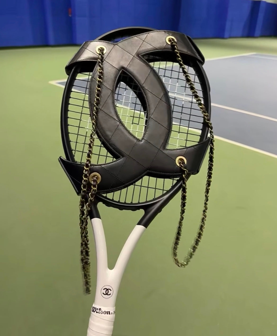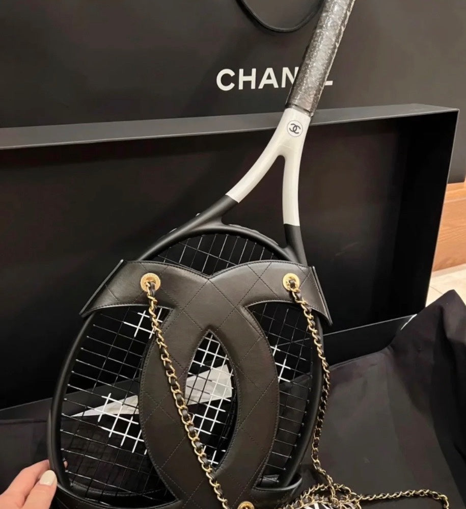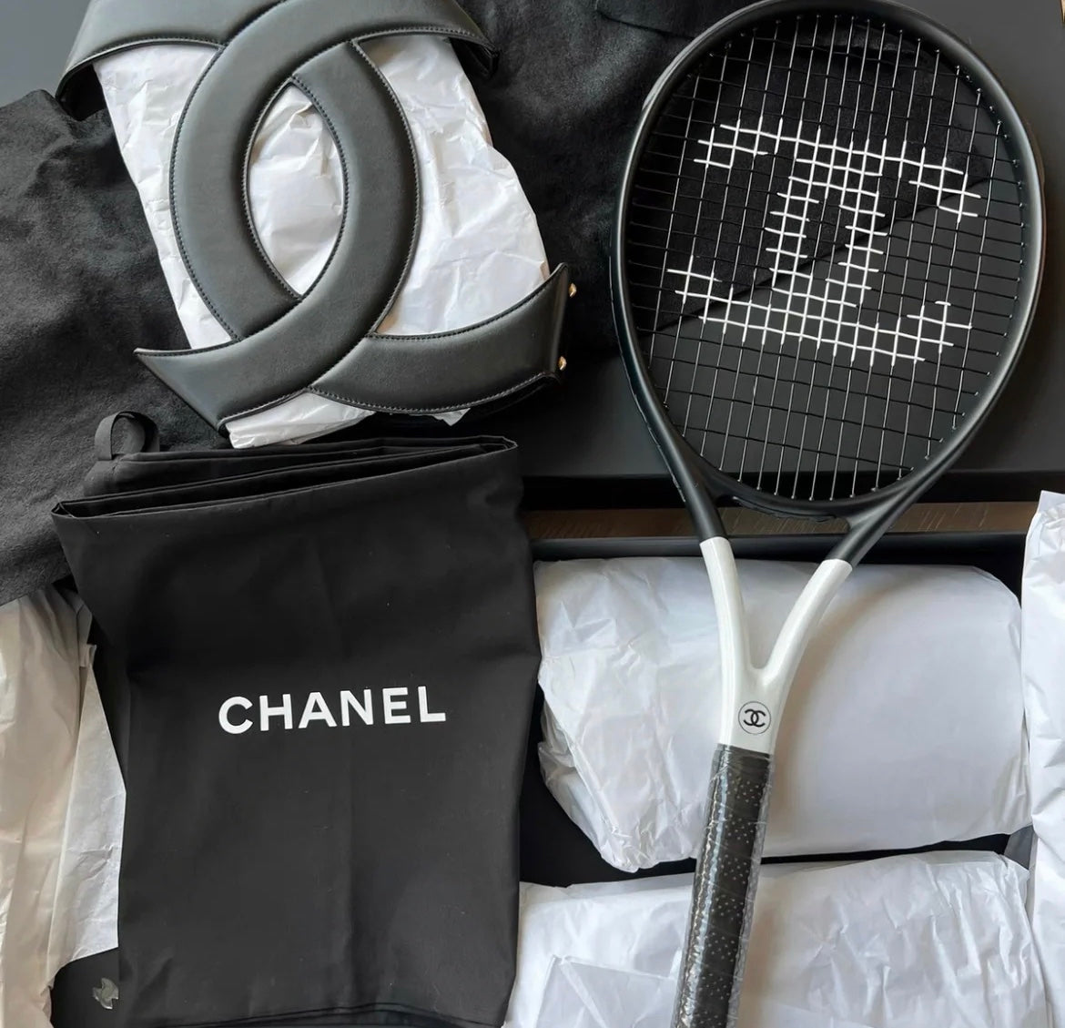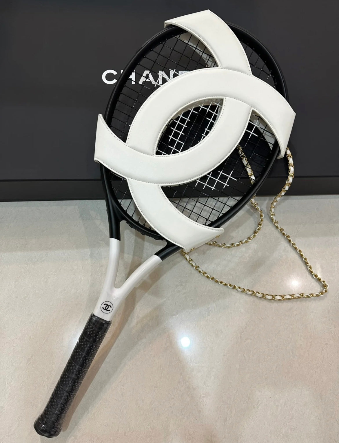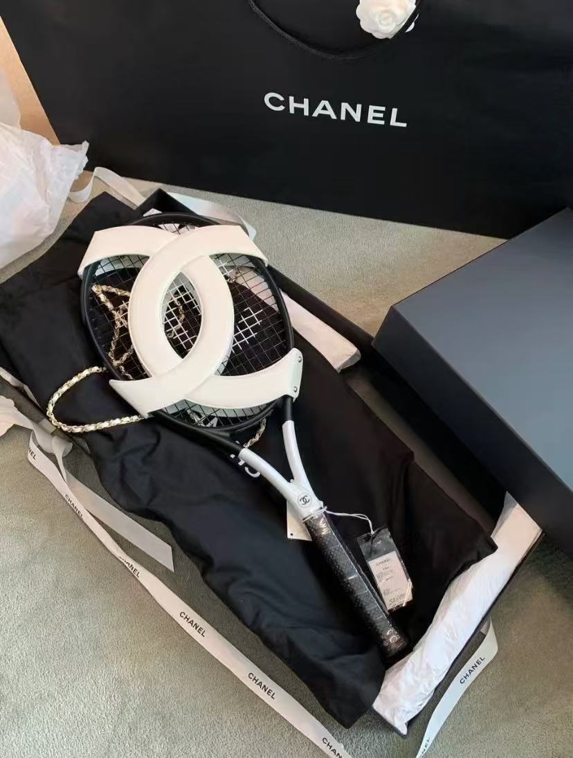 CHANEL TENNIS RACKETS WITH LEATHER CASE is now available, featuring its iconic logo, allowing you to flex in court. Or you can simply put this at home for display.