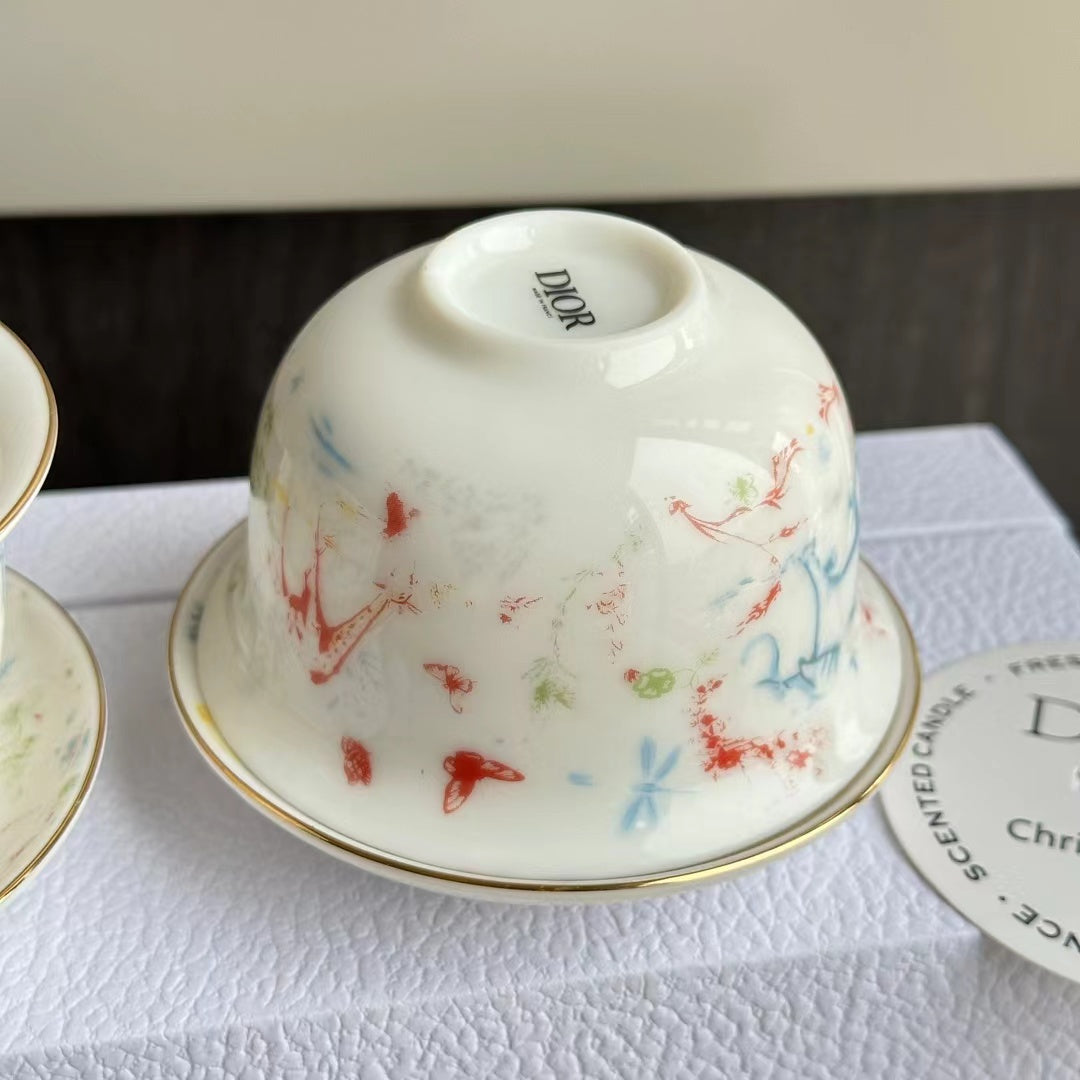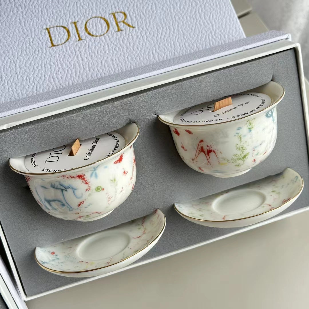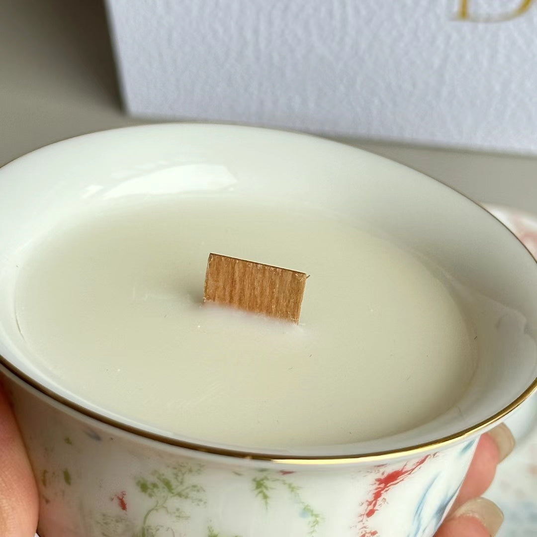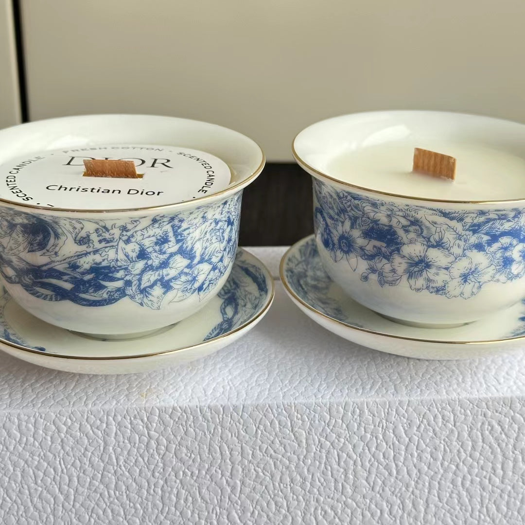 - 2 scented candles in ceramic cups