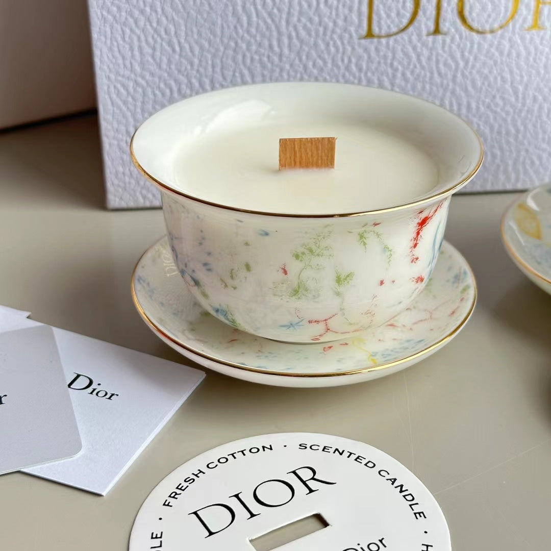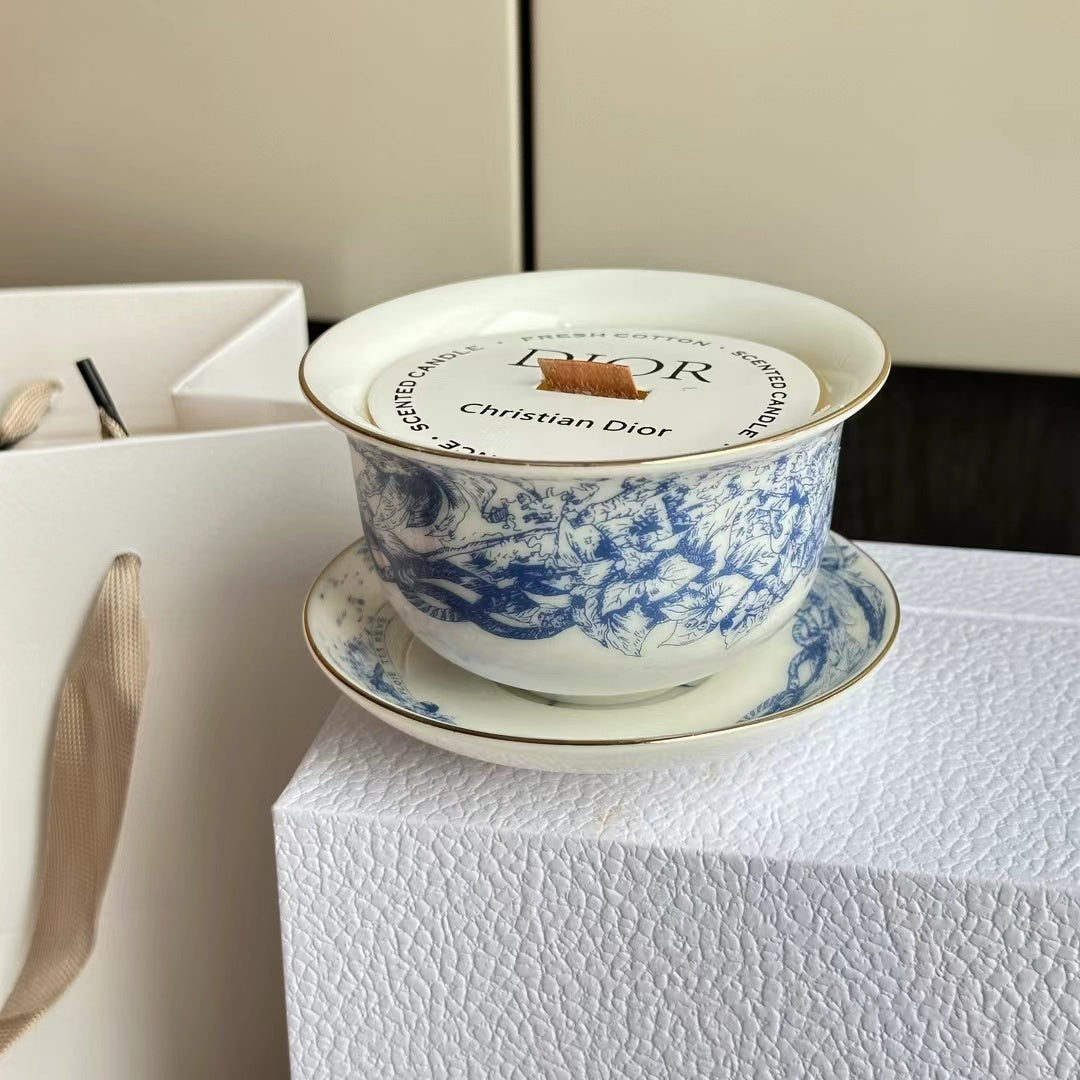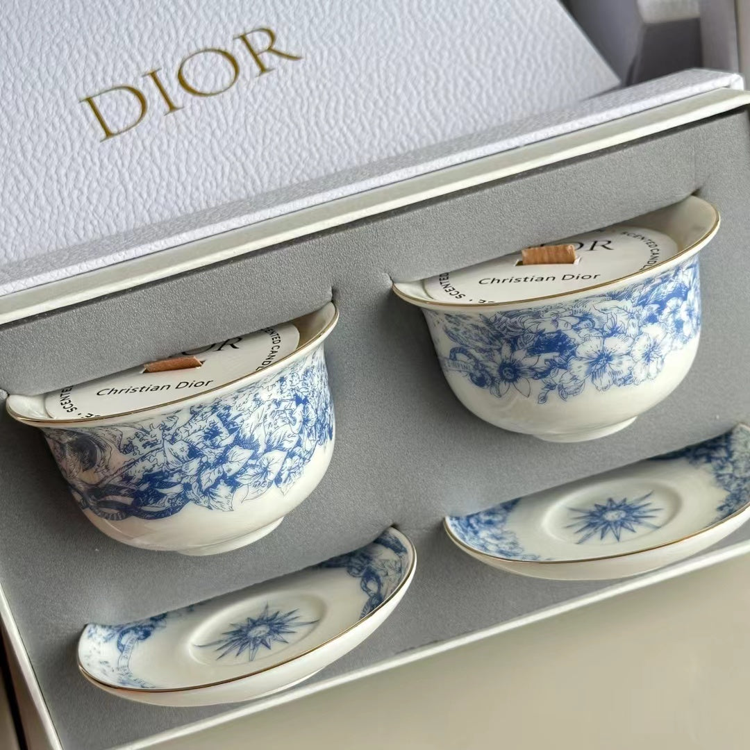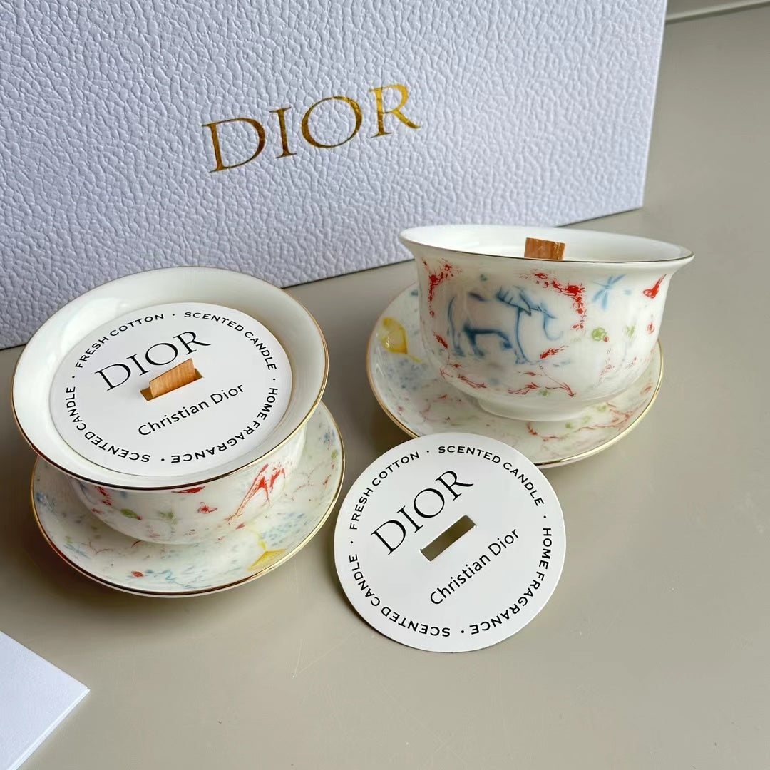 - 2 scented candles in ceramic cups