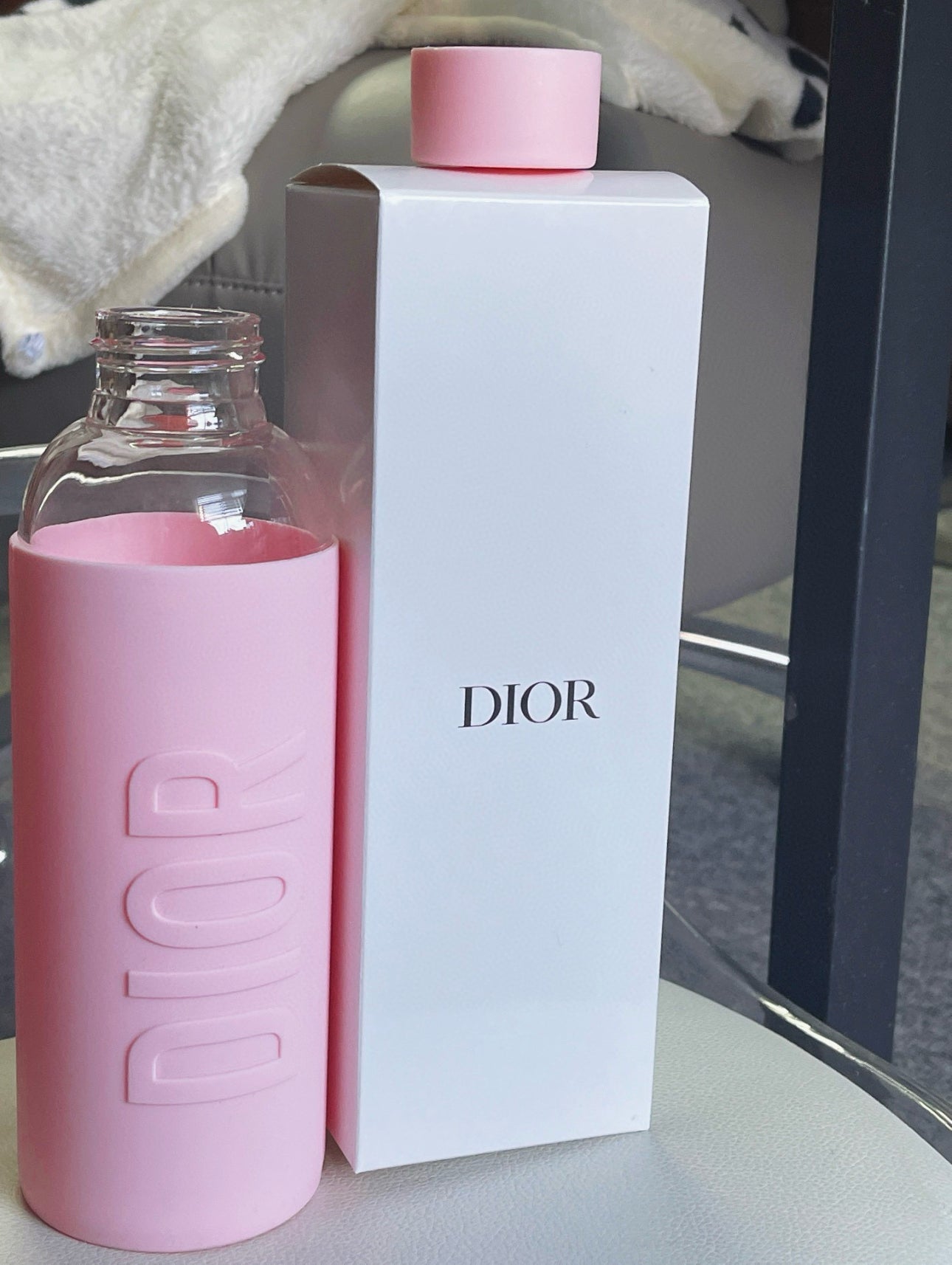 CHRISTIAN PINK WATER BOTTLE is now available for you to drink in style - you know the vibes.