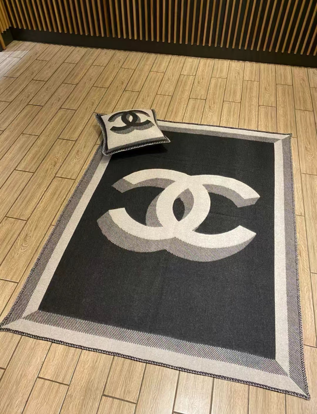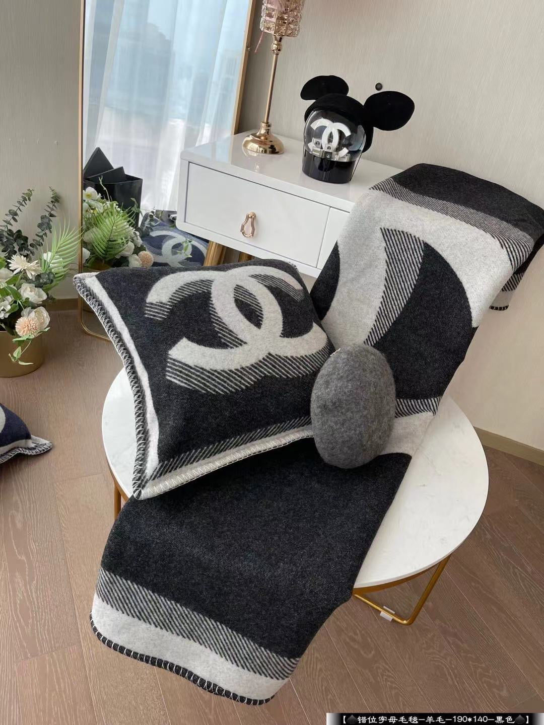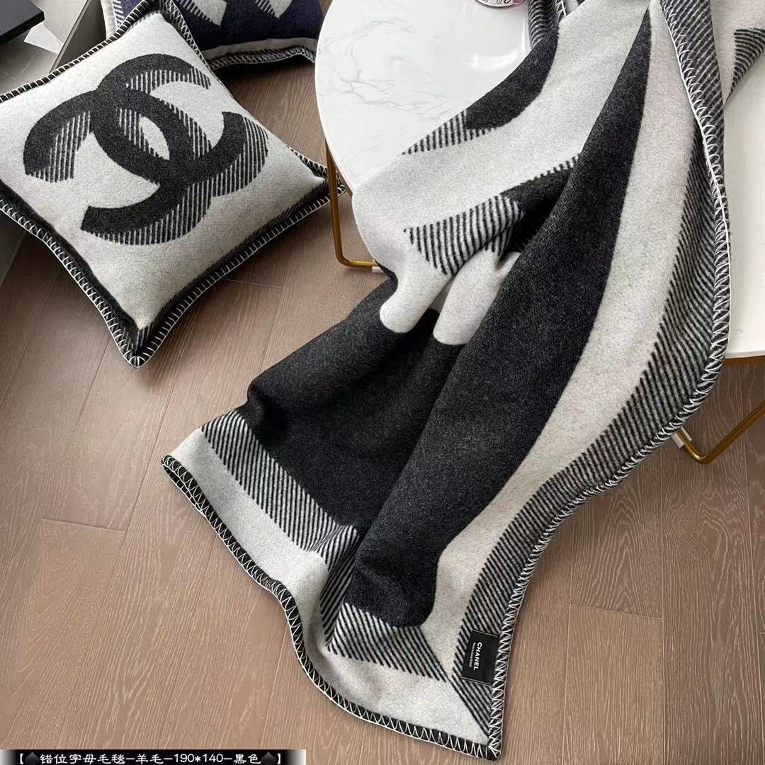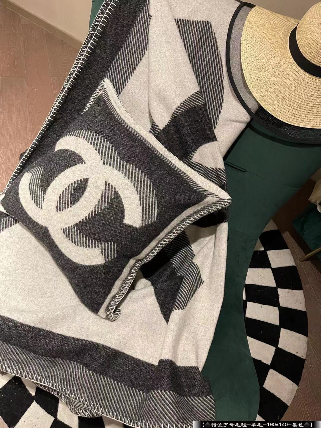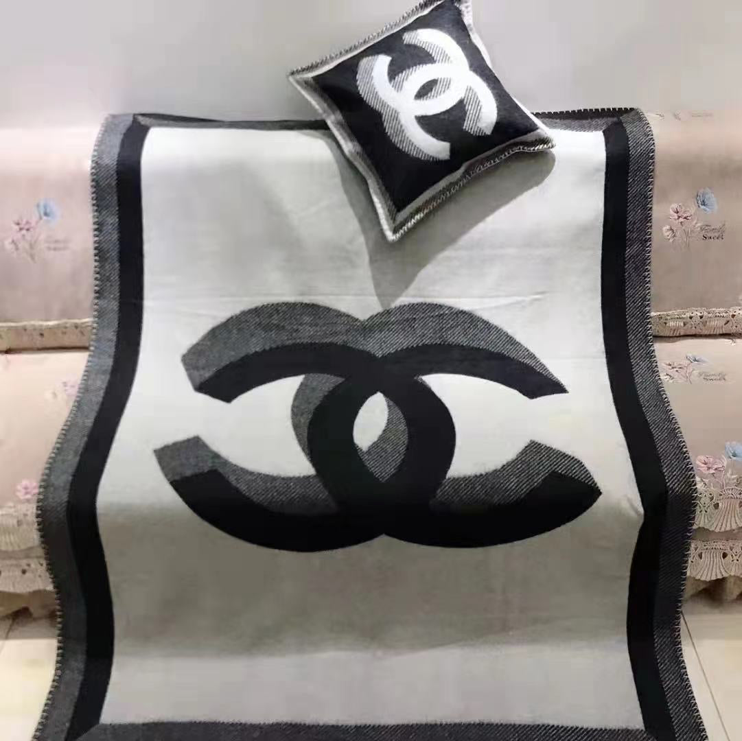 The blanket comes in 2 double-sided black/grey with branded detailing and the iconic double C logo.