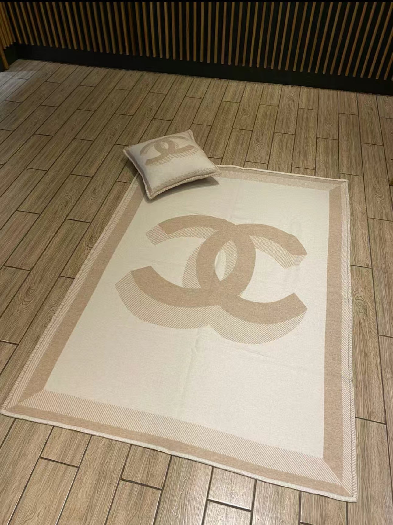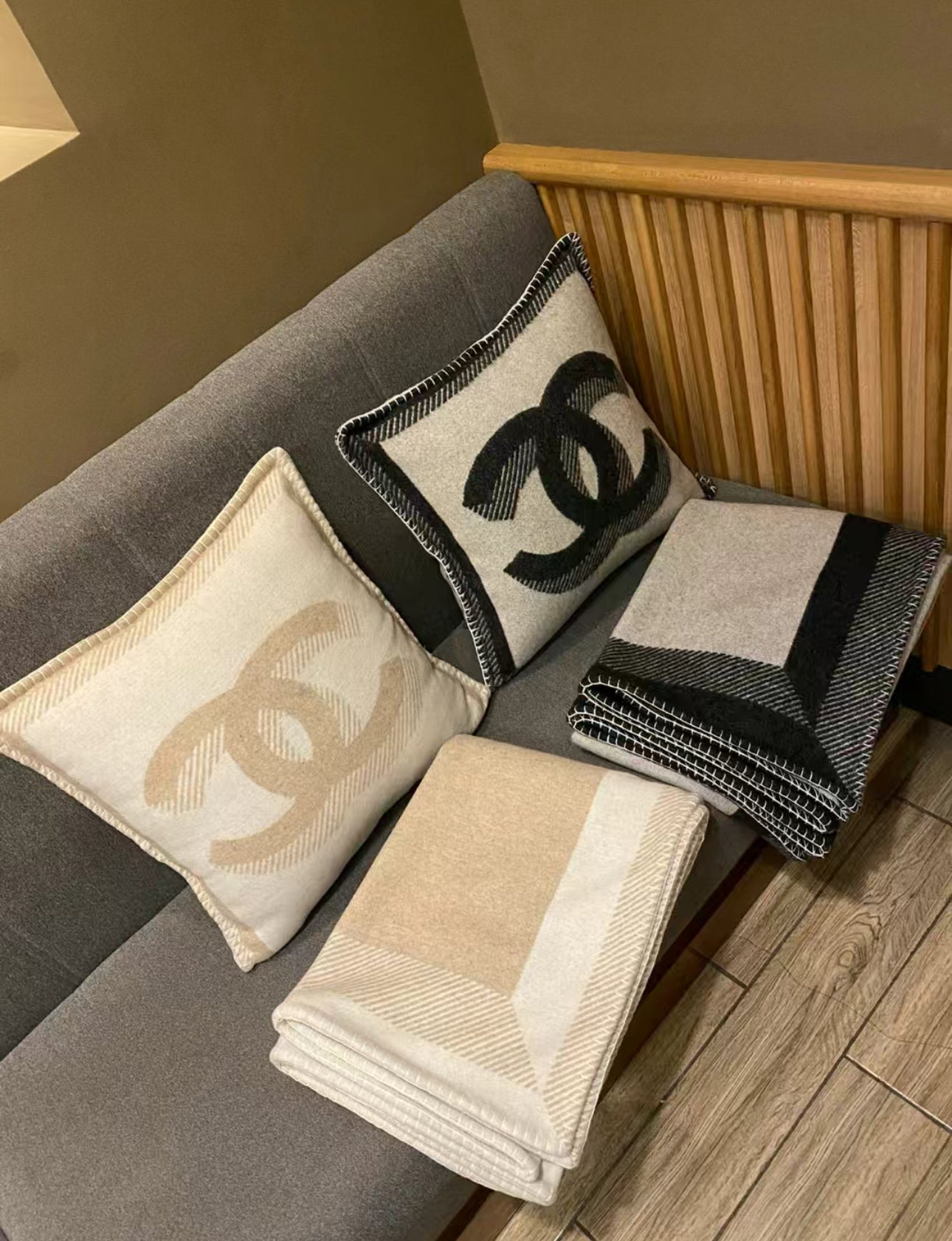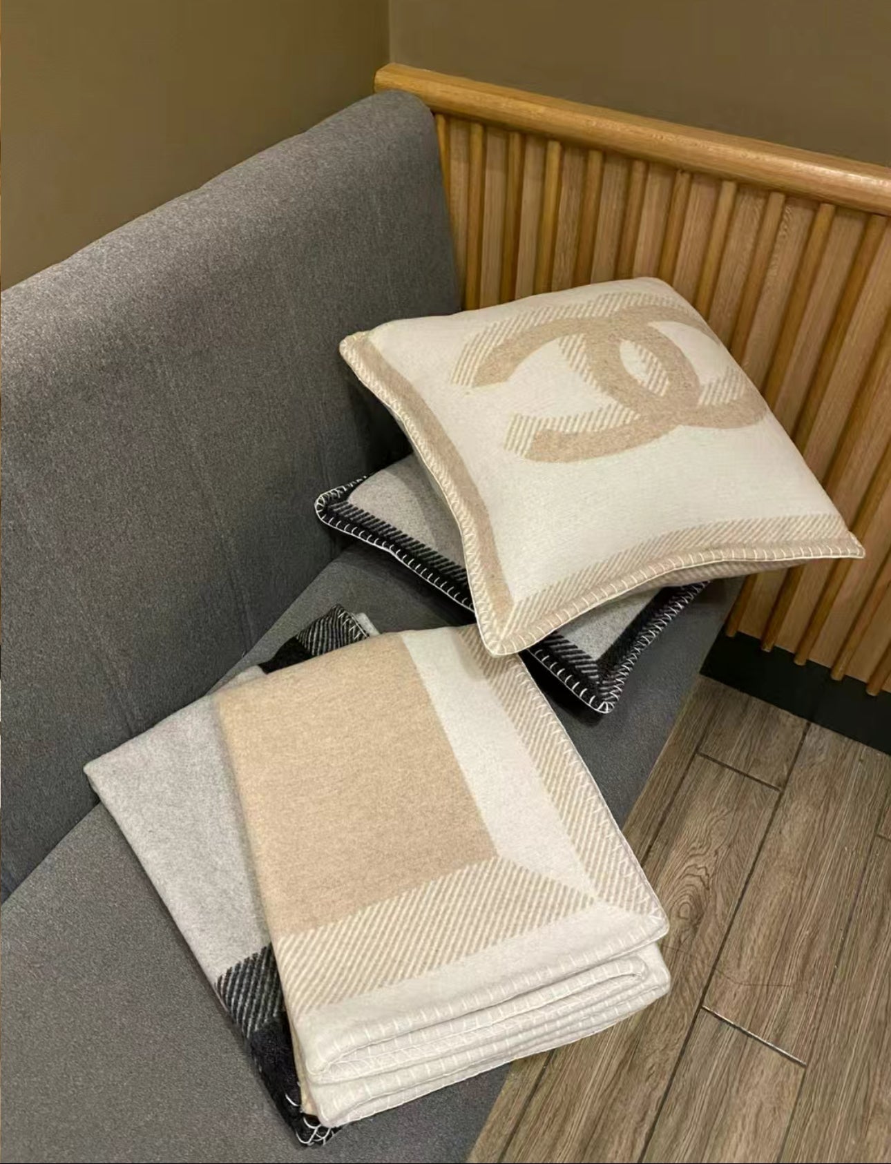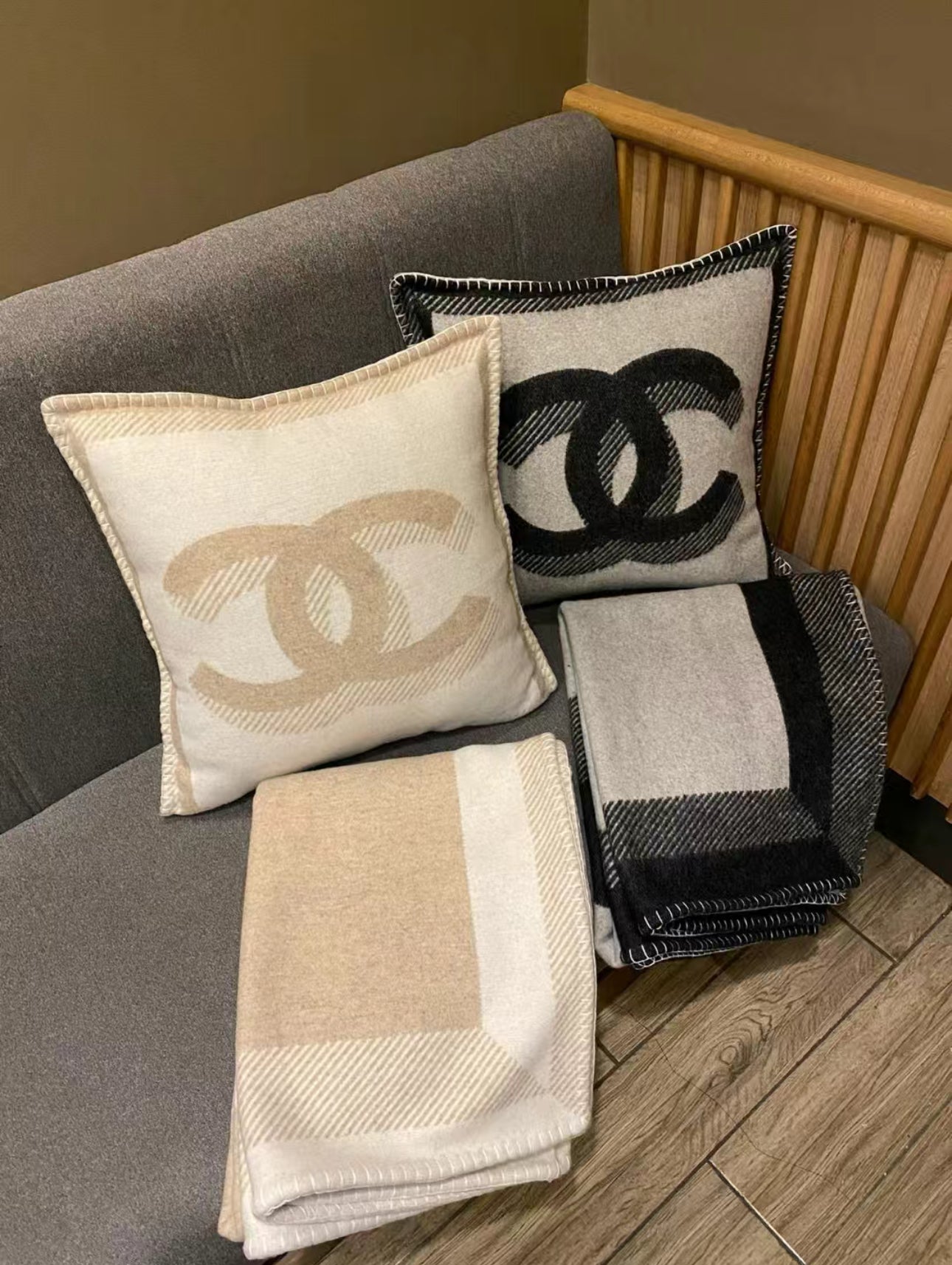 The blanket comes in 2 double-sided black/grey with branded detailing and the iconic double C logo.