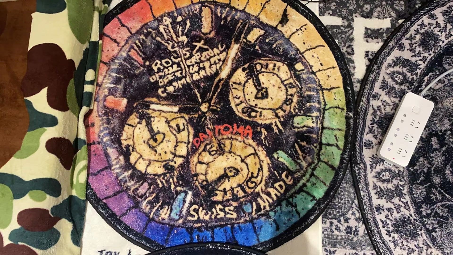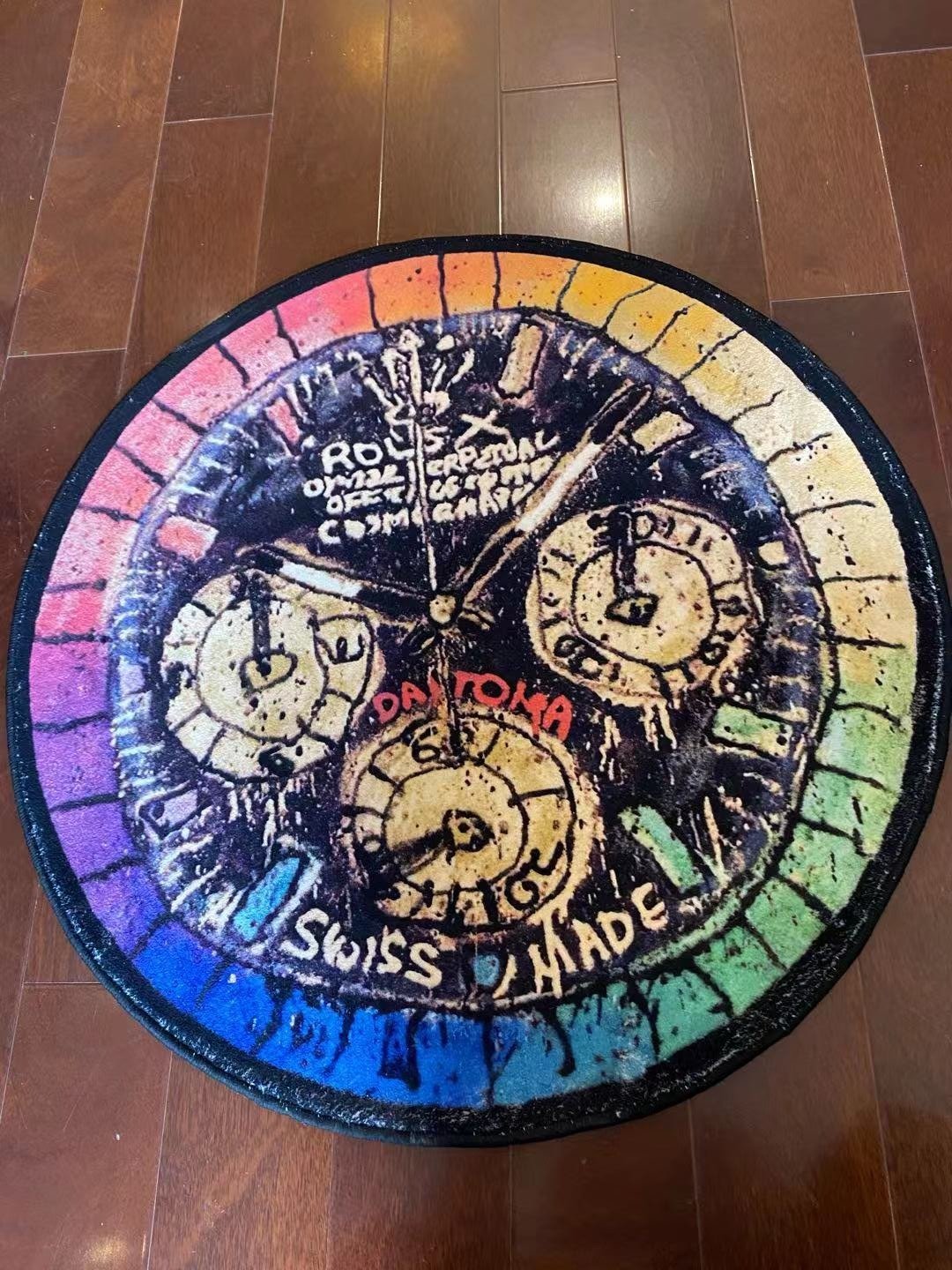 MADSAKI ROLEX "RAINBOW DAYTONA" RUG is now available in three sizes, giving you the chance to add some colours to your room. This bright piece will definitely elevate your room to the next level.