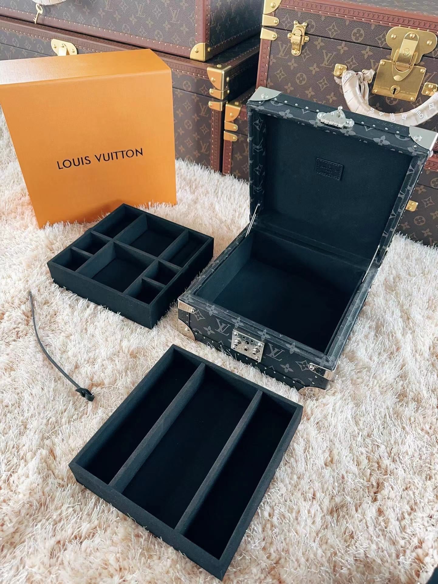 CUSTOM BLACK LV JEWELRY BOX is now available for you to showcase and organize your items in style.