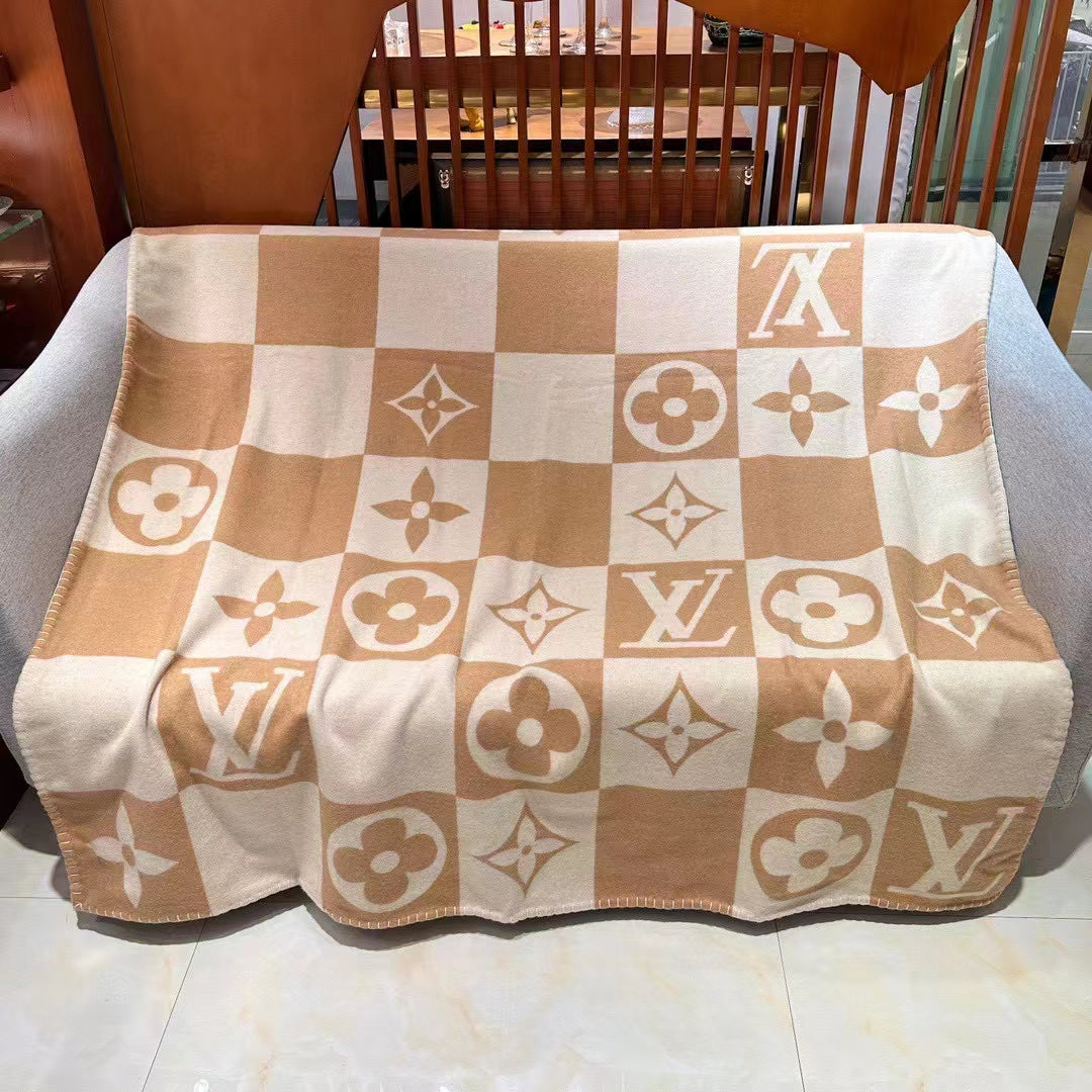 CUSTOM LV BROWN CHECKERED THROW BLANKET is now available, don't miss out!