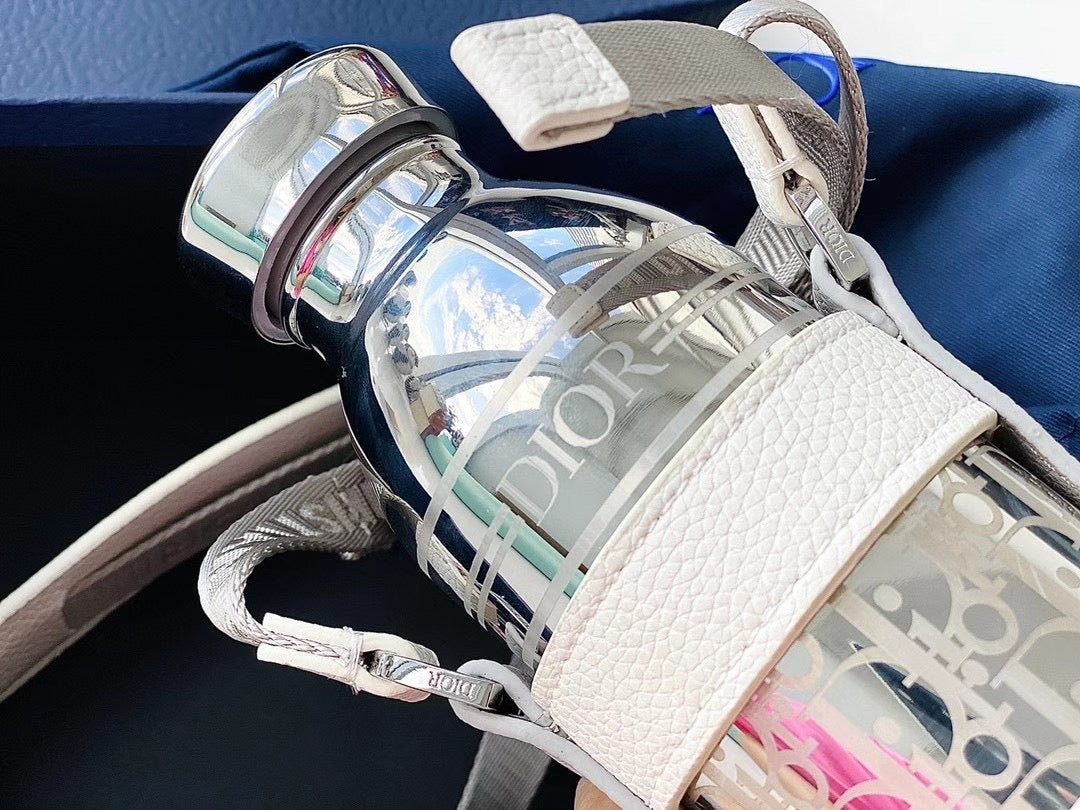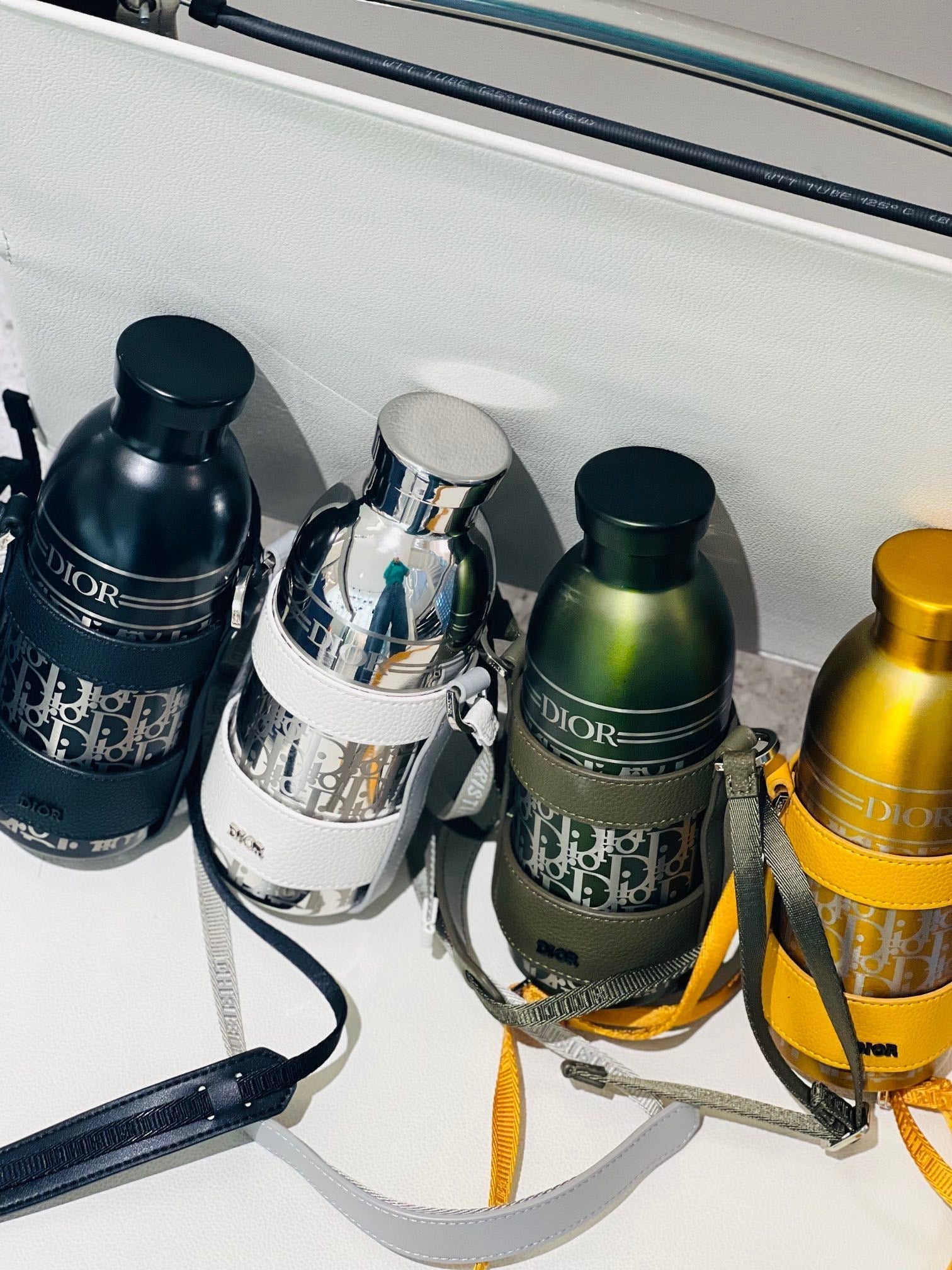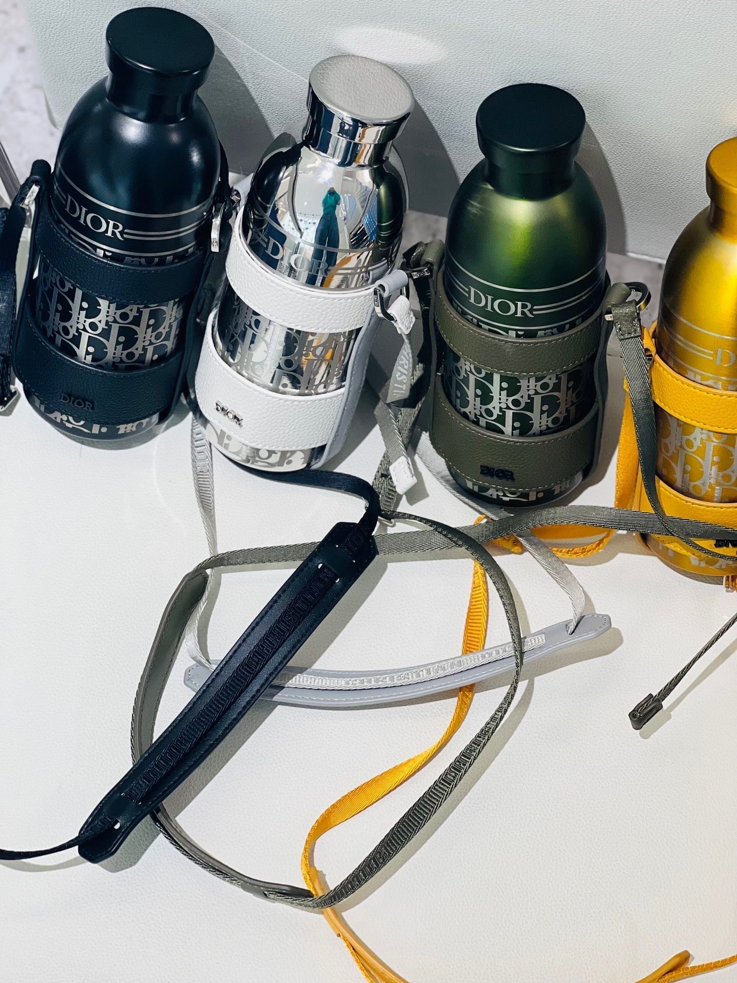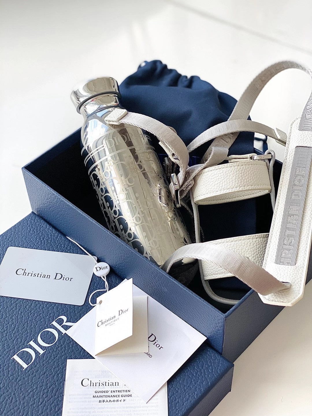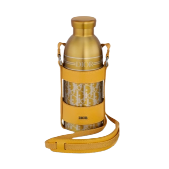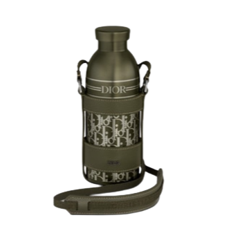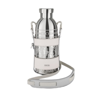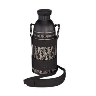 The insulated bottle and holder is created in palladium-finish stainless steel, featuring the classic Dior Oblique monogram.