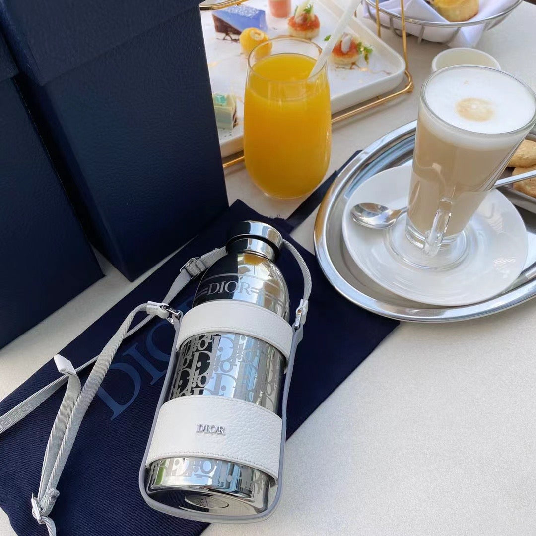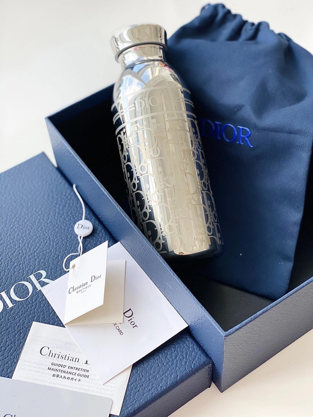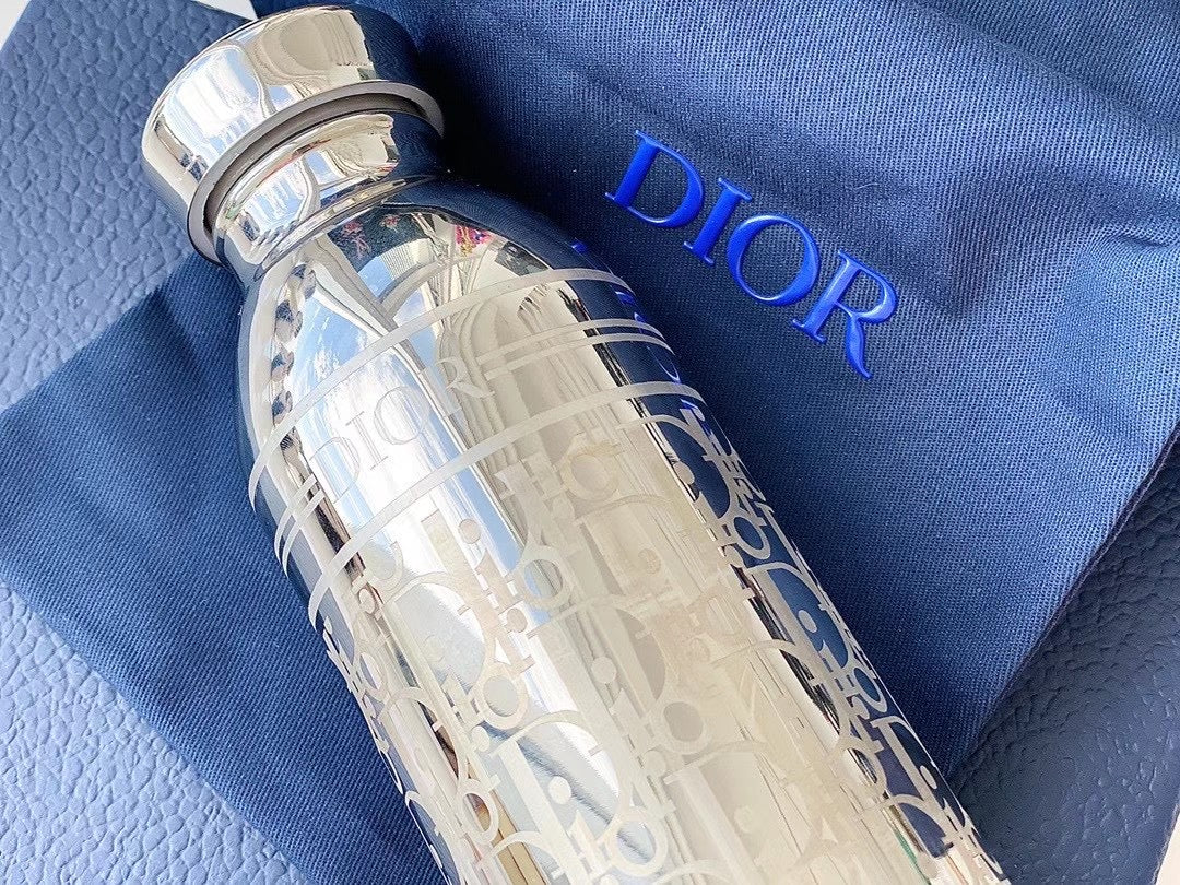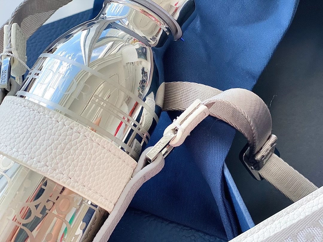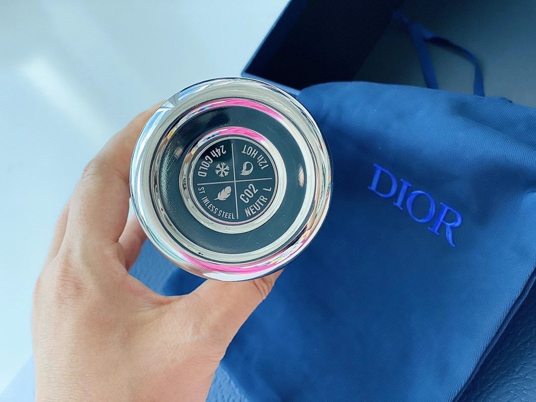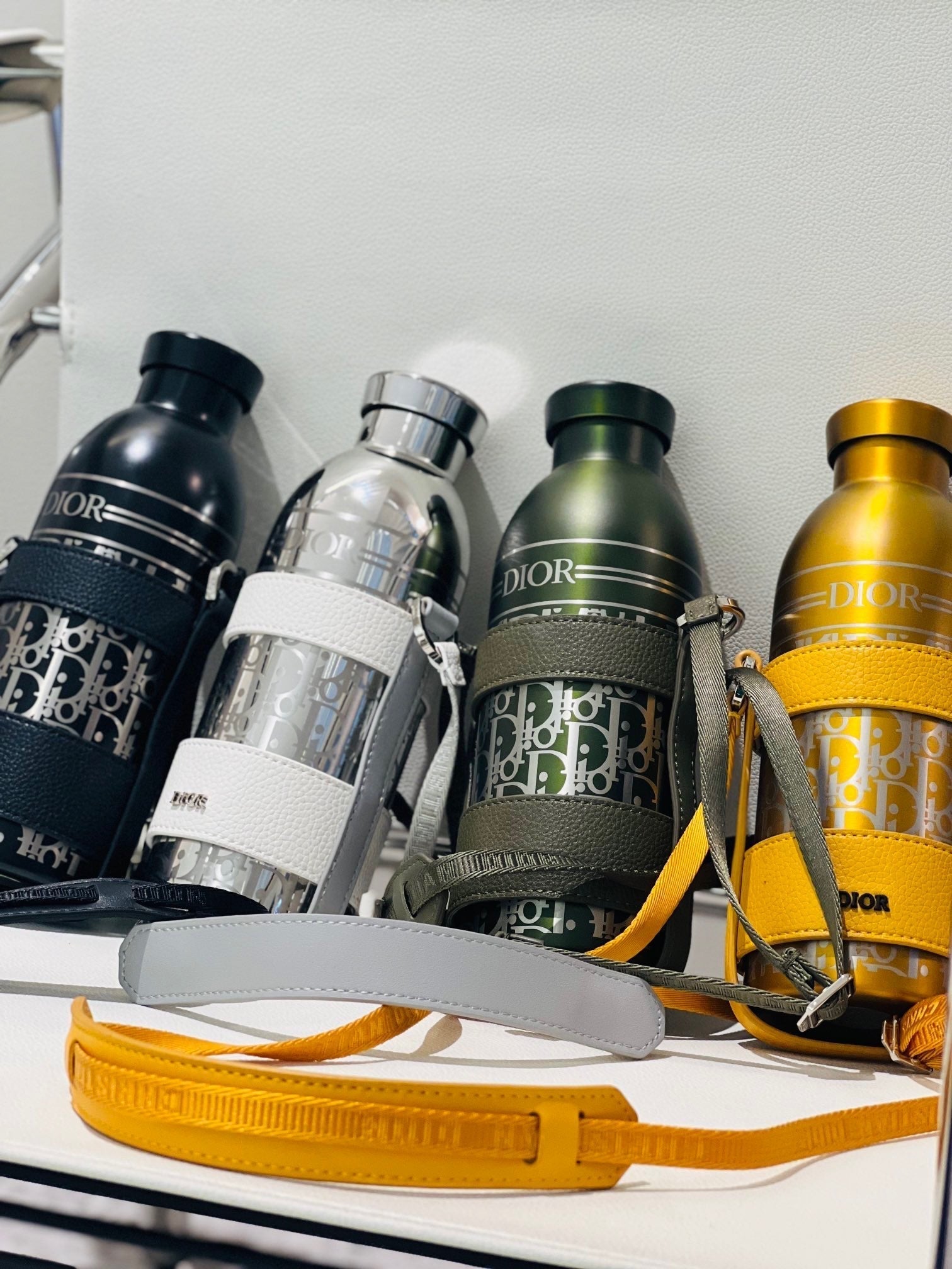 The insulated bottle and holder is created in palladium-finish stainless steel, featuring the classic Dior Oblique monogram.