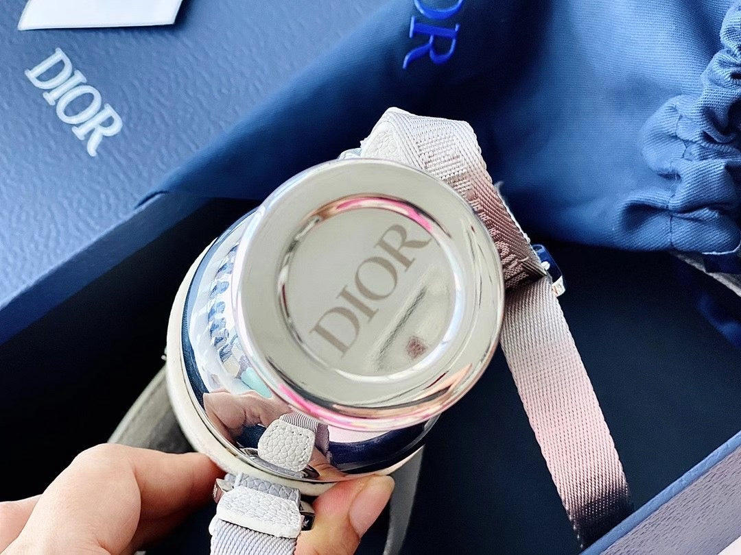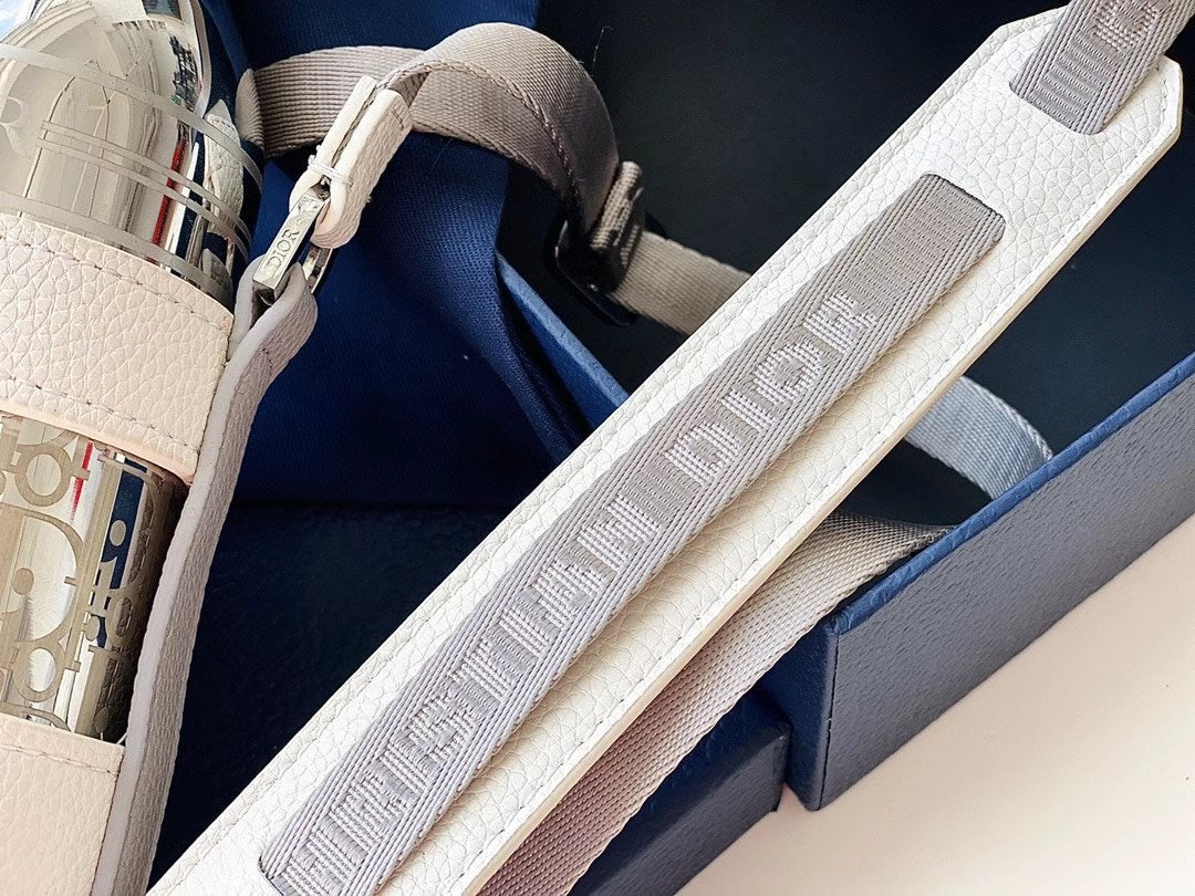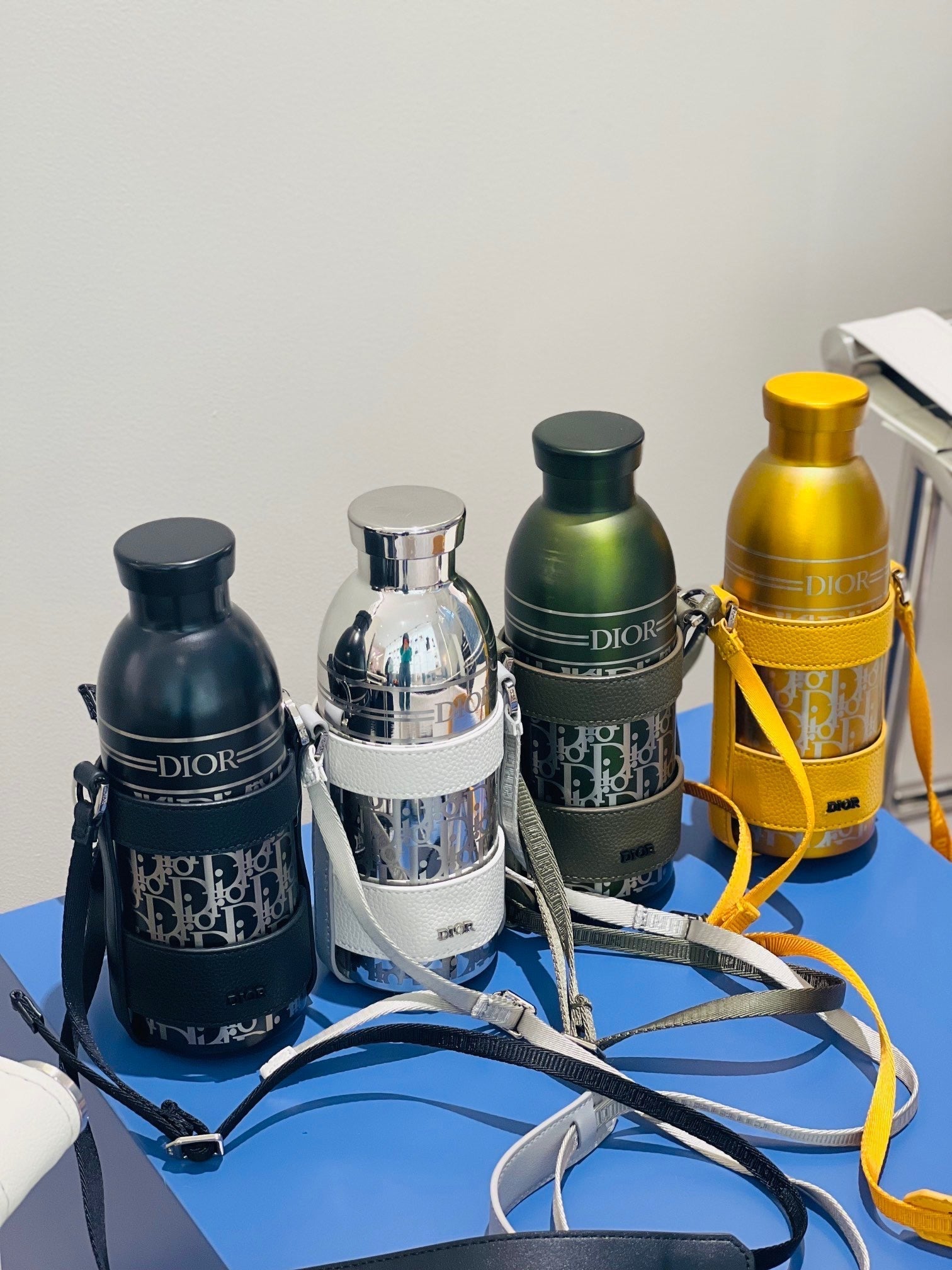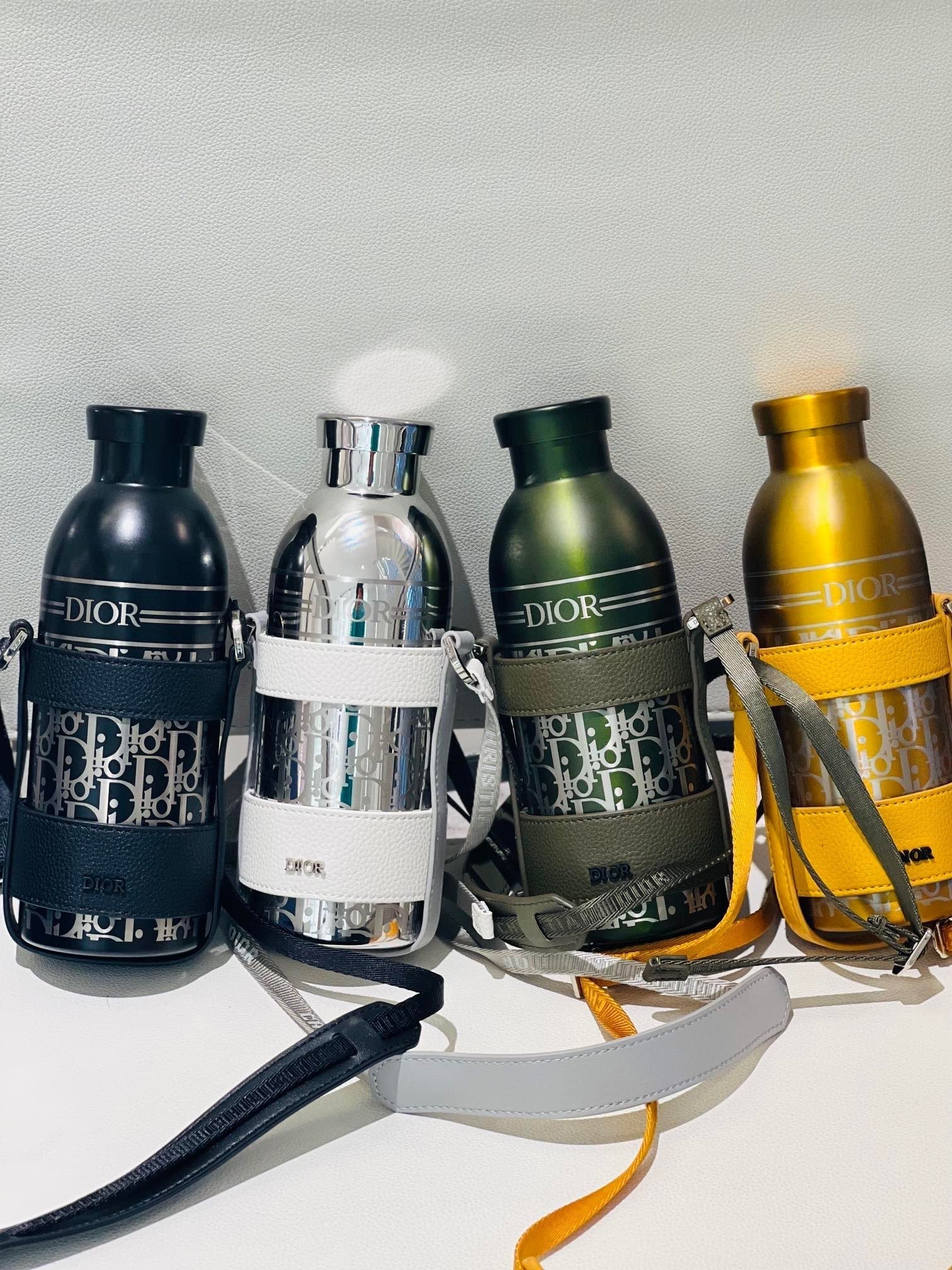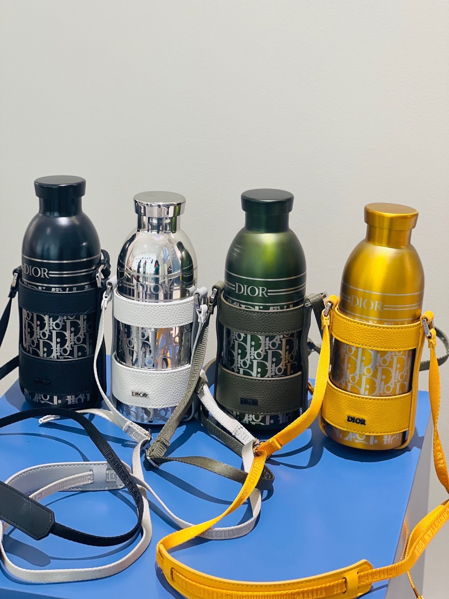 The insulated bottle and holder is created in palladium-finish stainless steel, featuring the classic Dior Oblique monogram.