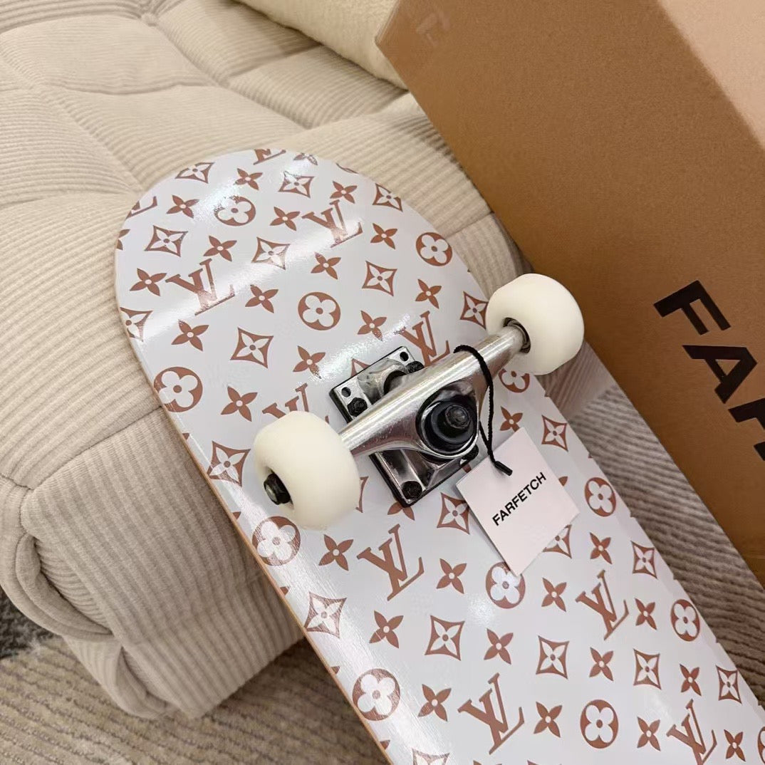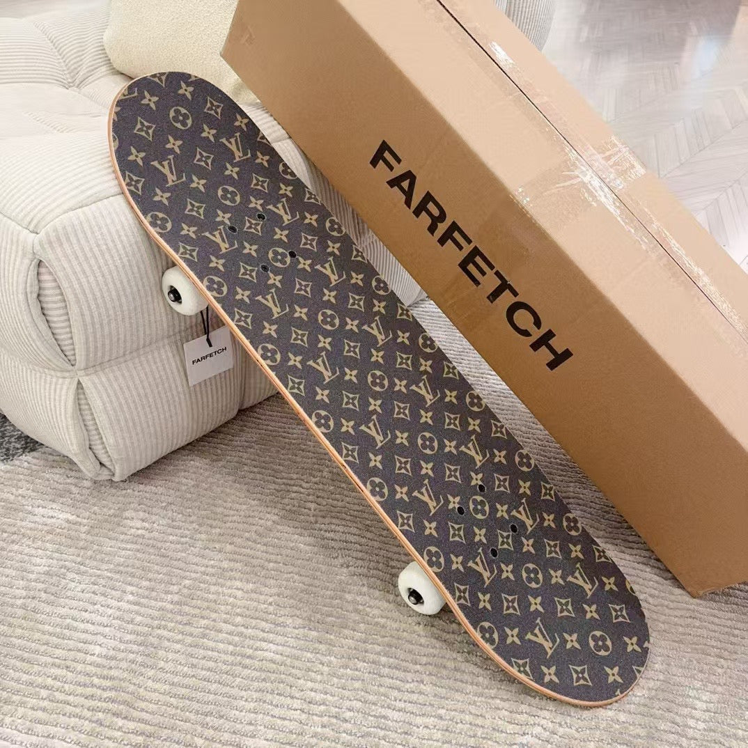 CUSTOM LV BROWN MONOGRAM SKATEBOARD is now available, allowing you to skate on this beautiful collectible.