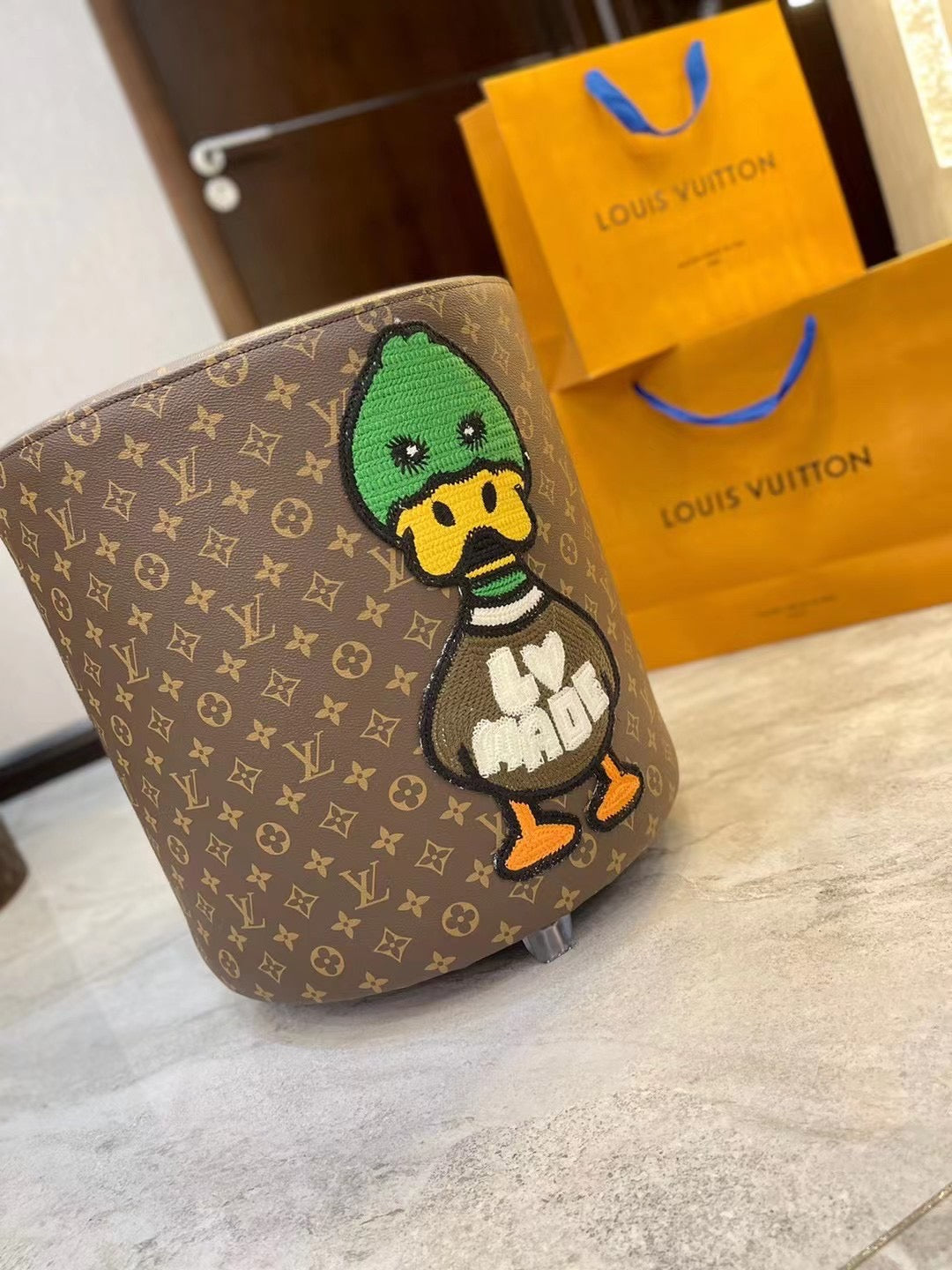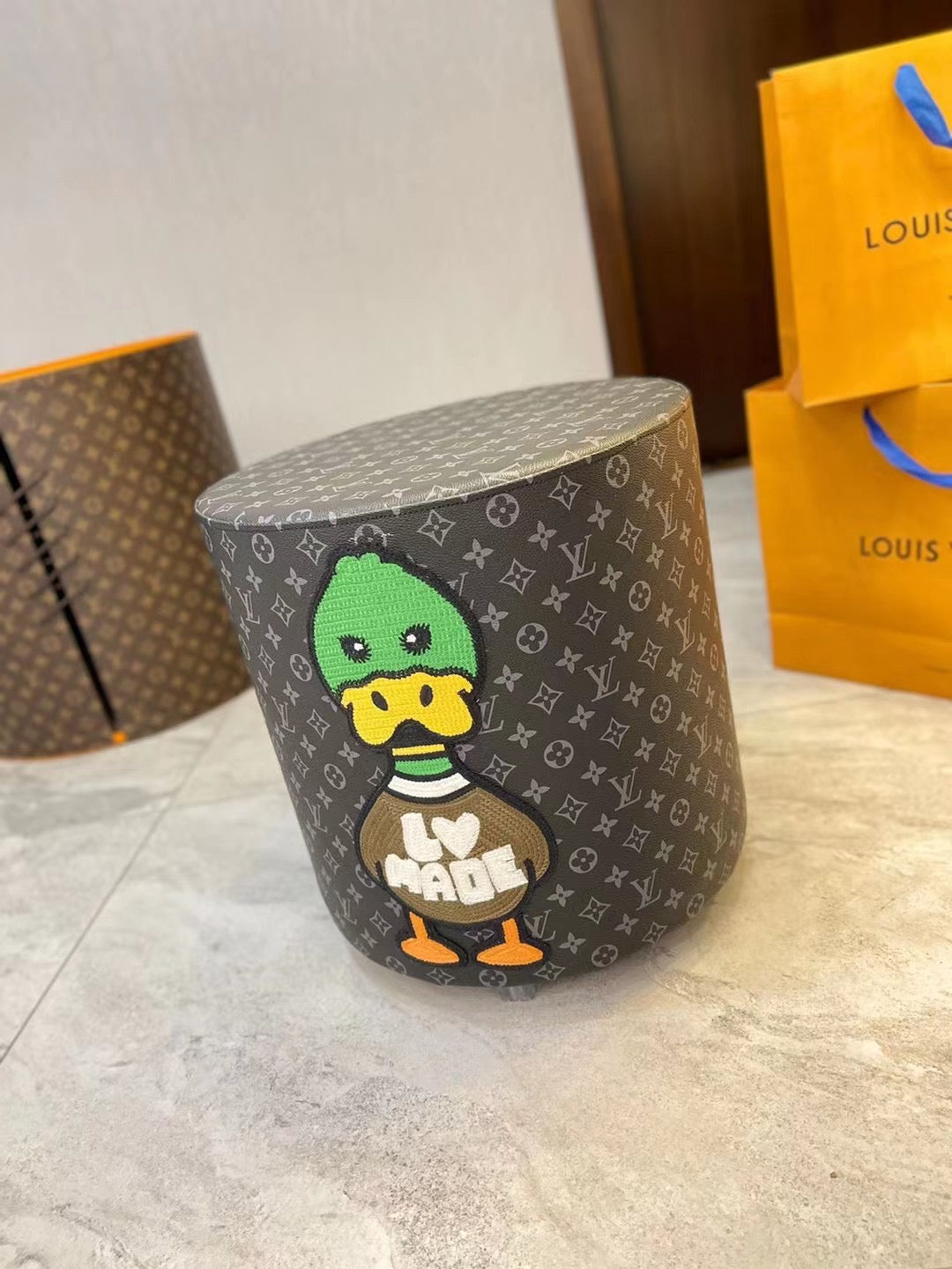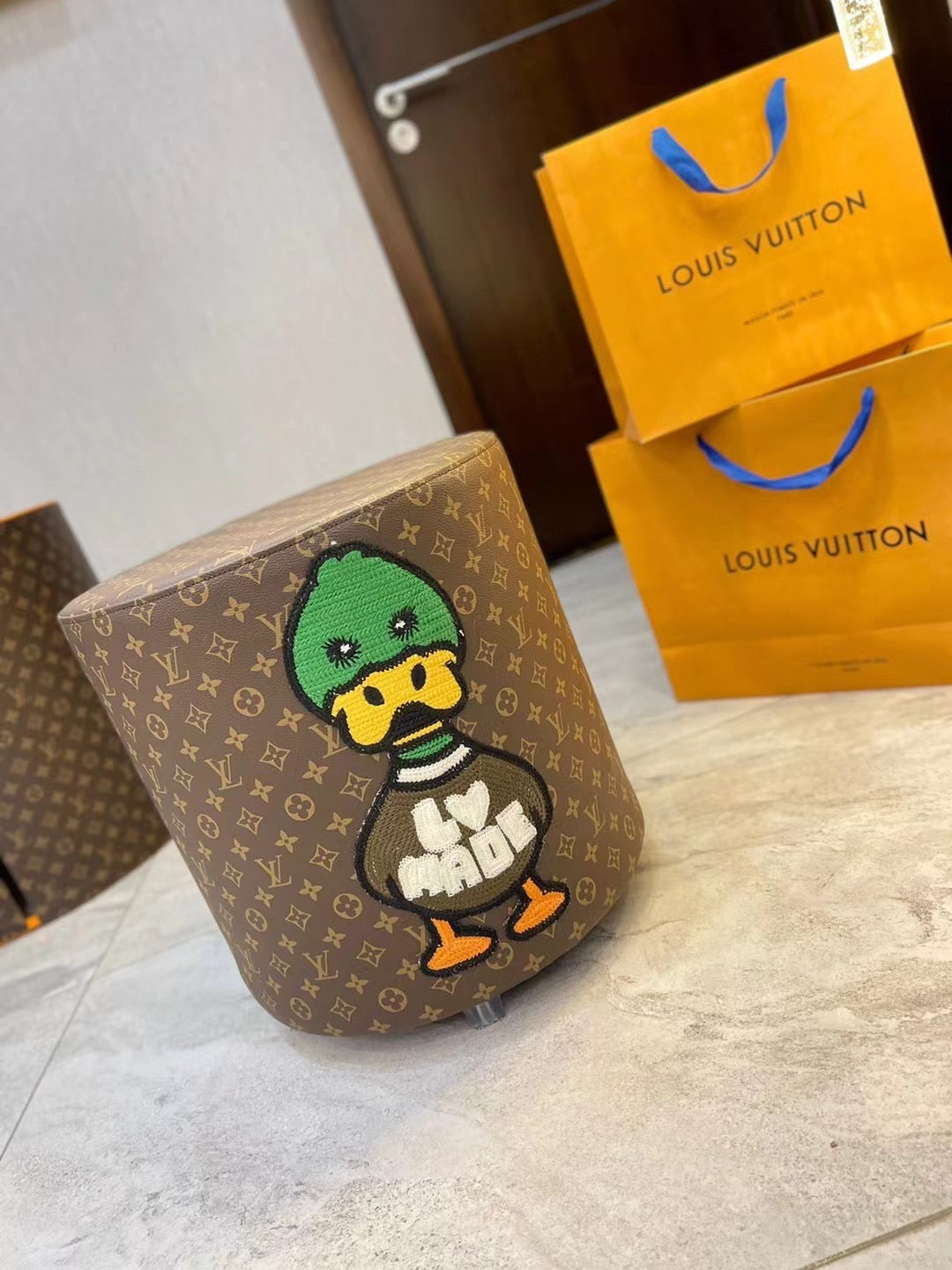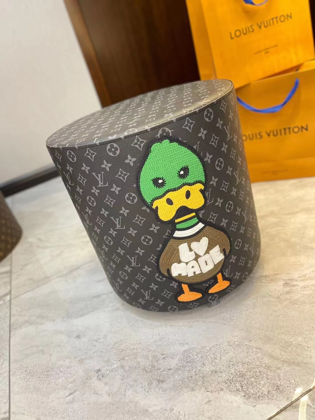 CUSTOM LV HUMAN MADE OTTOMAN STOOL is now available for you to add a pop of colours and fun to your home.