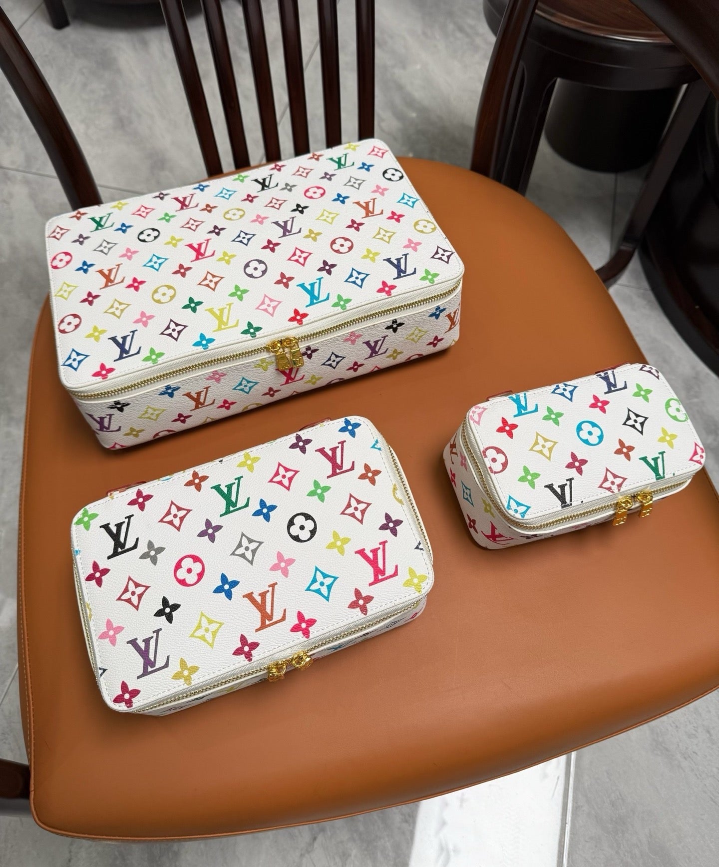 CUSTOM LV MAKE UP 3 IN 1 POUCH SET (MULTICOLOUR)