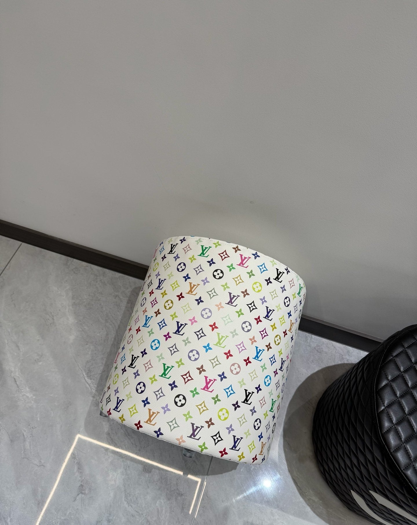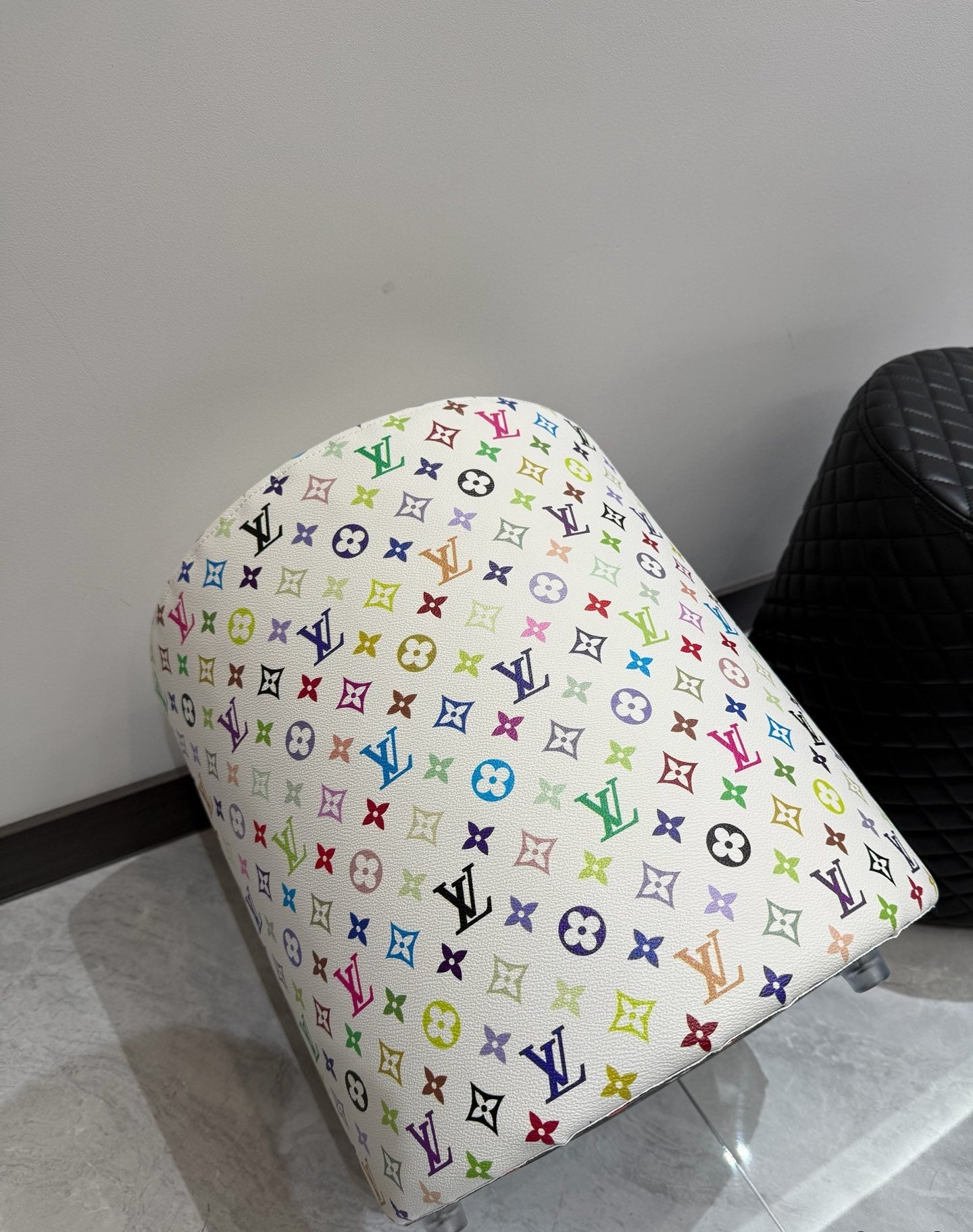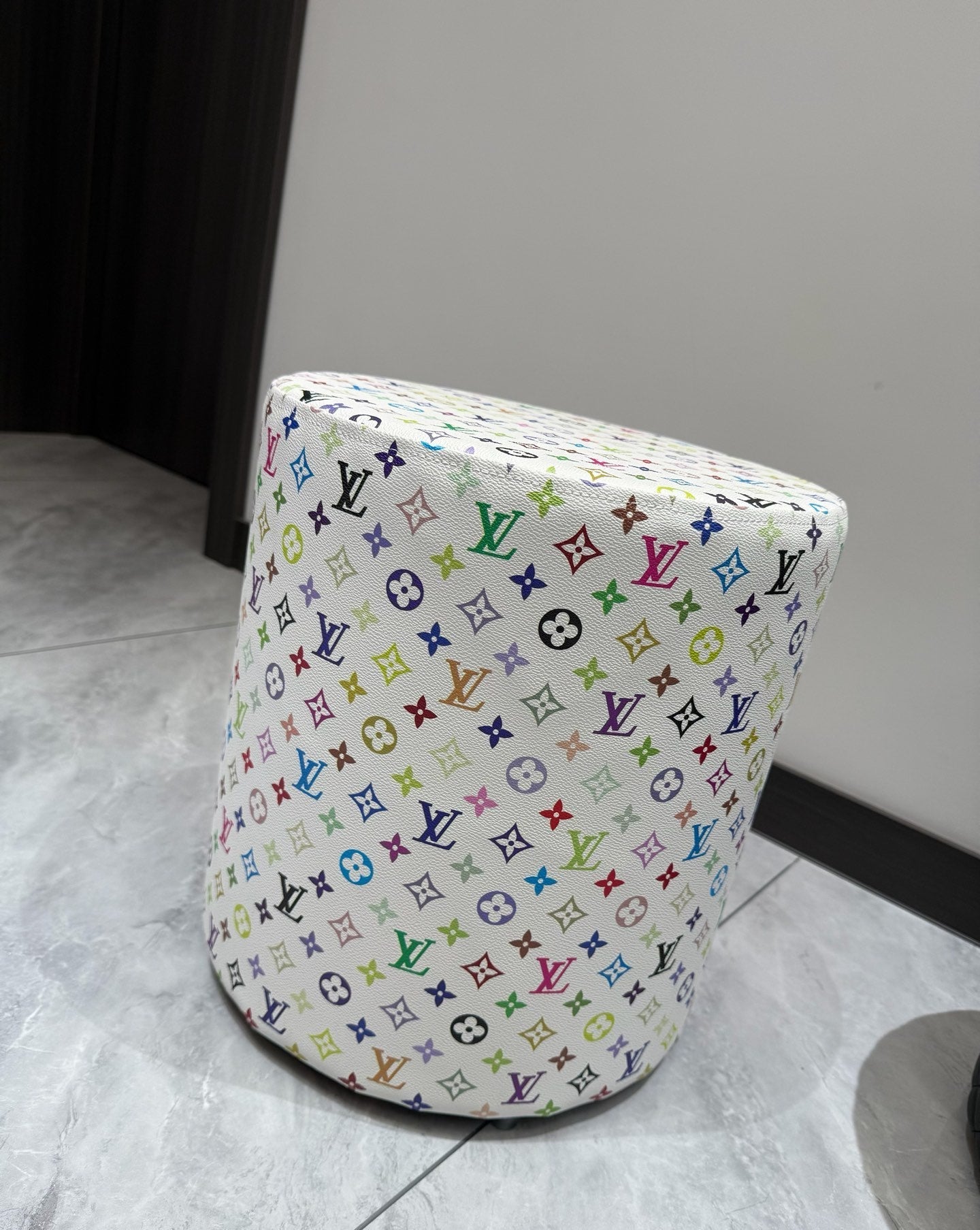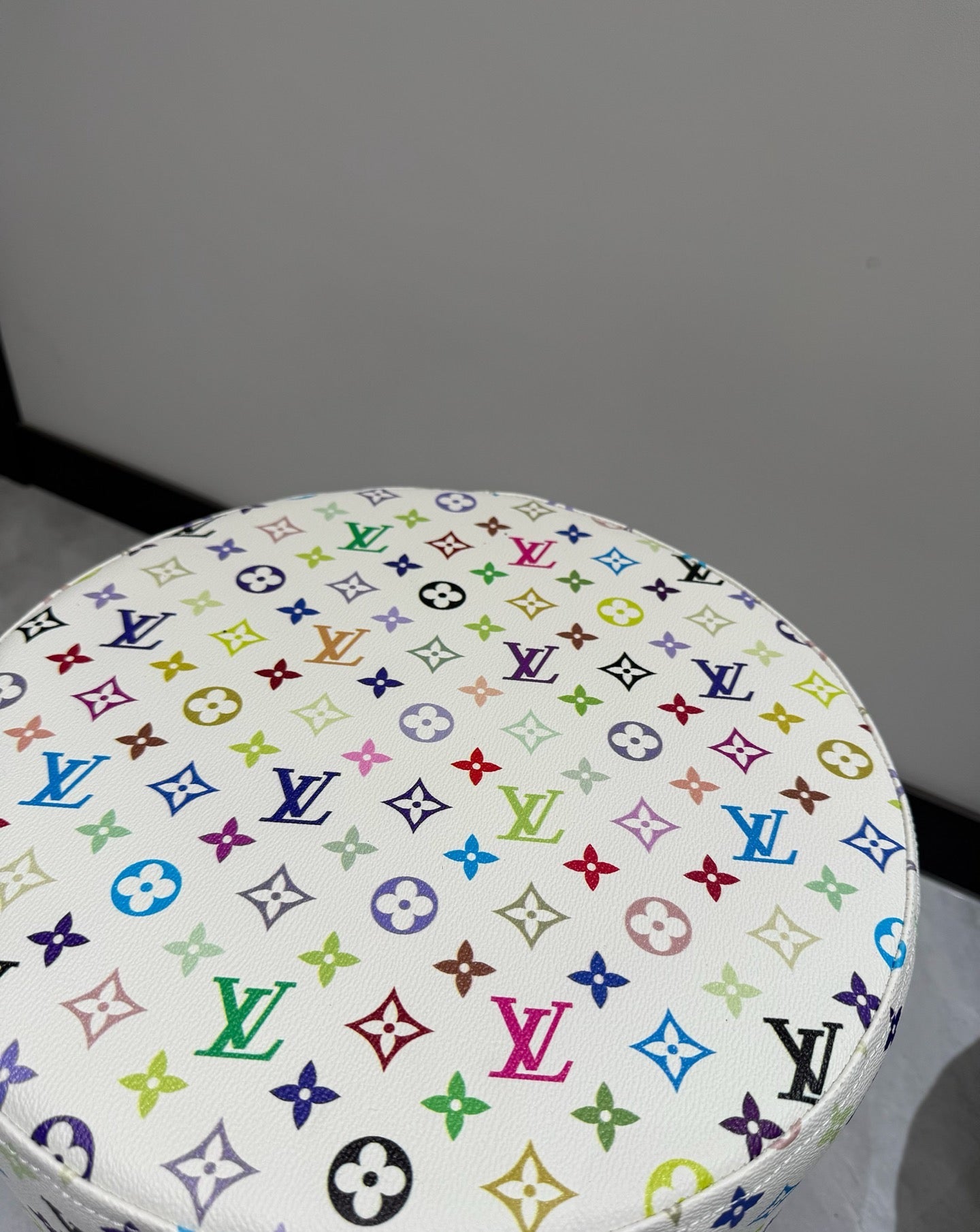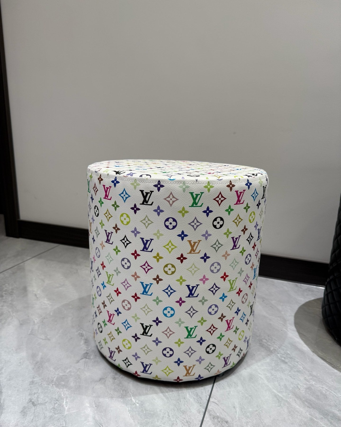 CUSTOM LV MULTICOLOUR OTTOMAN STOOL (WHITE)