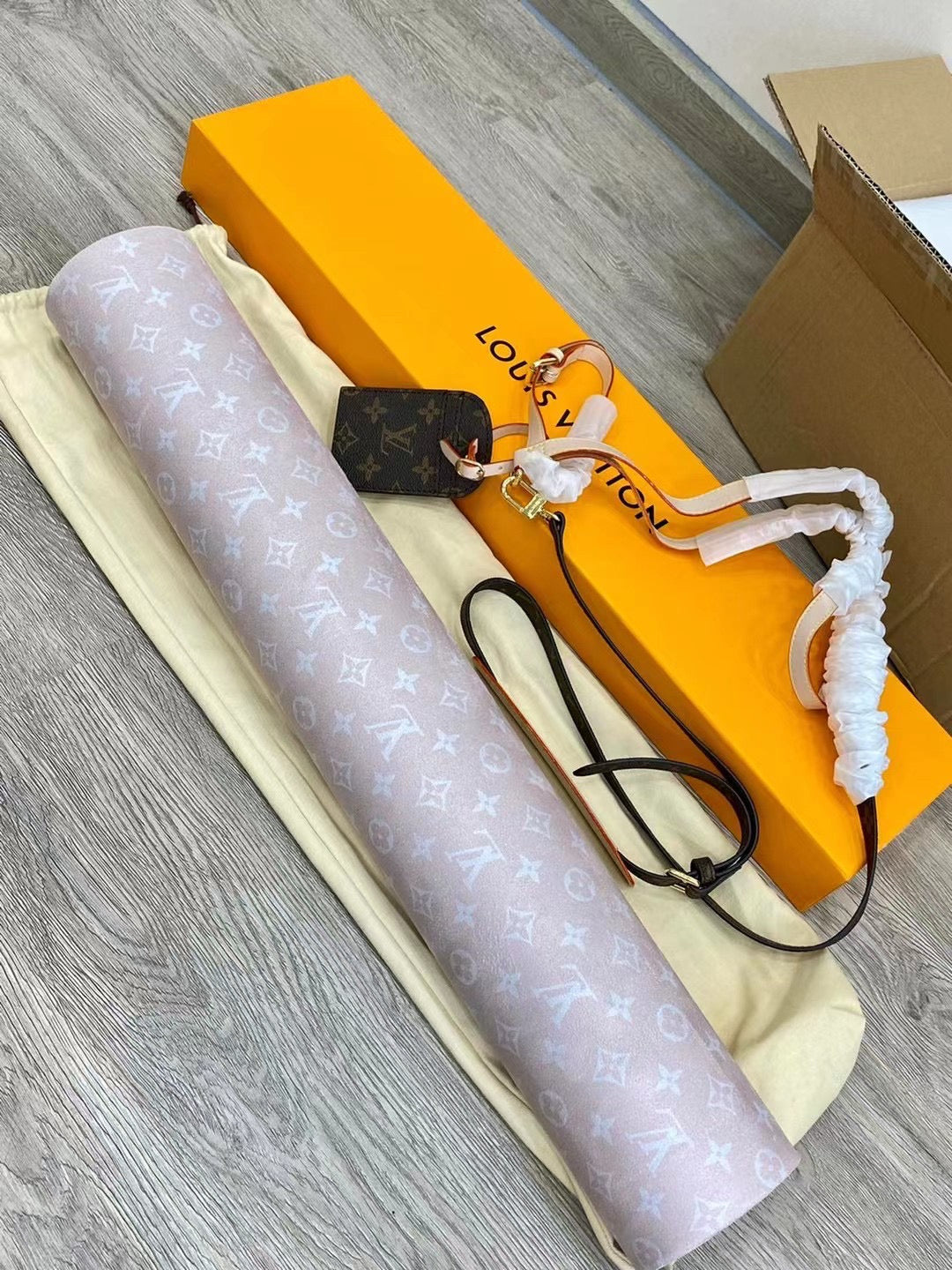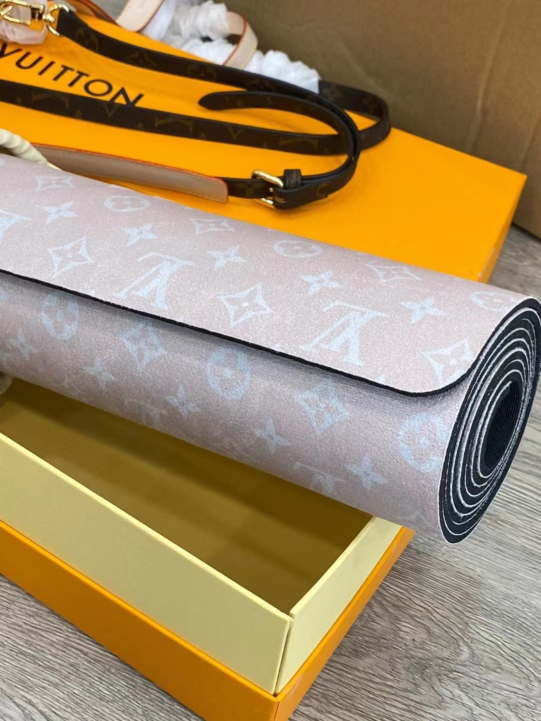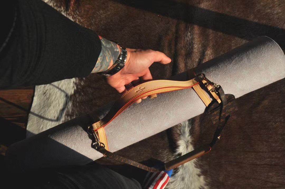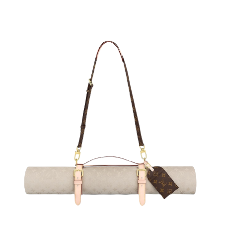 Meditative stretching takes on a sleek bent with the custom exercise mat. It comes detailed with luxurious House signatures, including natural cowhide leather details and a Monogram canvas strap and cardholder.