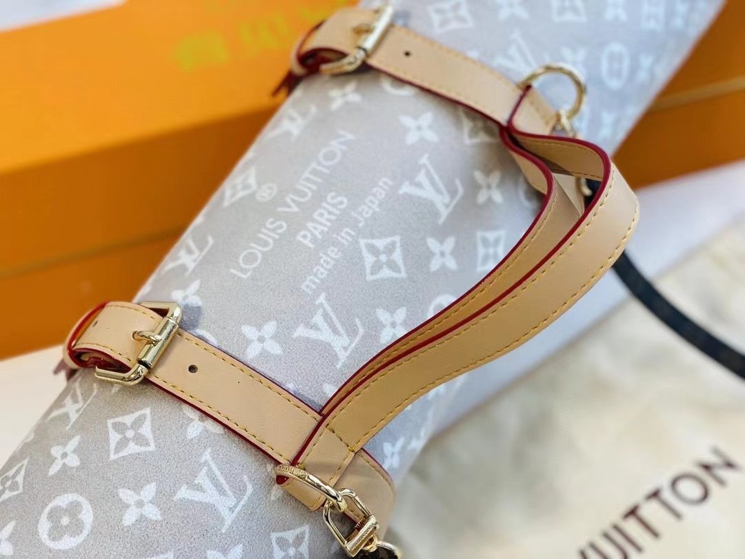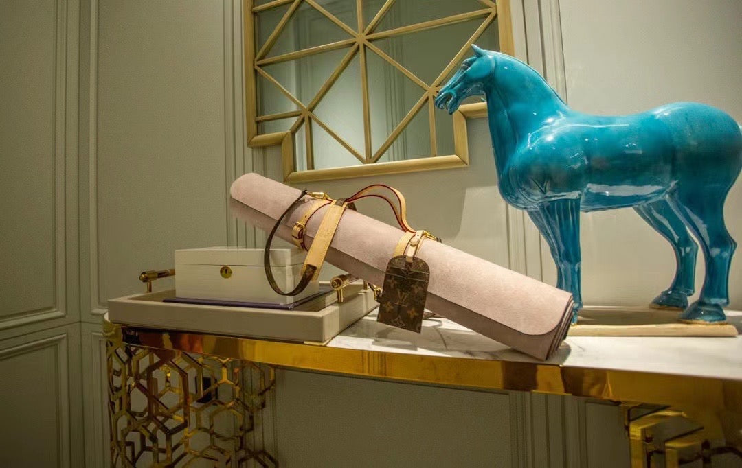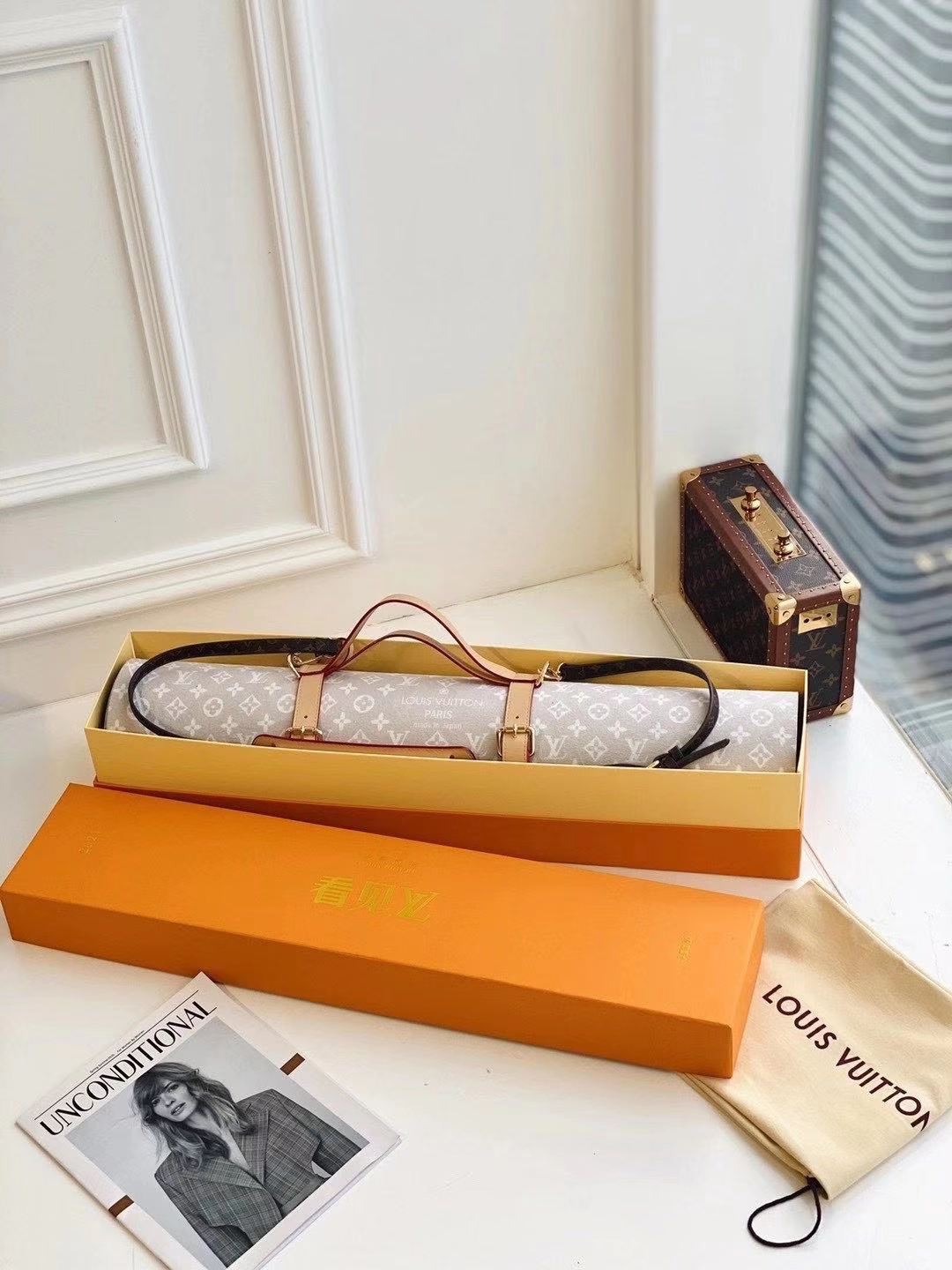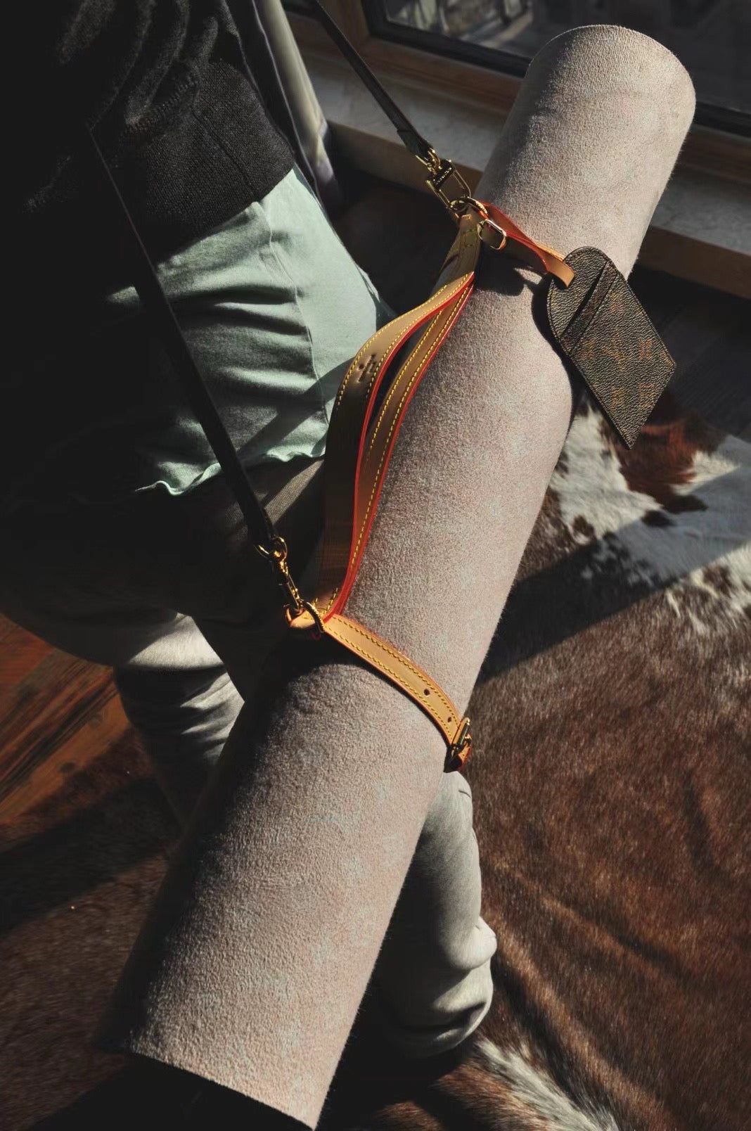 Meditative stretching takes on a sleek bent with the custom exercise mat. It comes detailed with luxurious House signatures, including natural cowhide leather details and a Monogram canvas strap and cardholder.