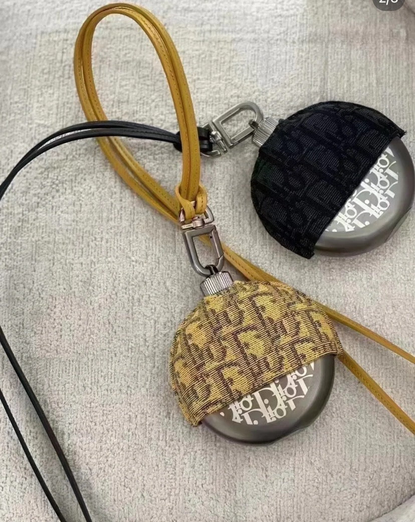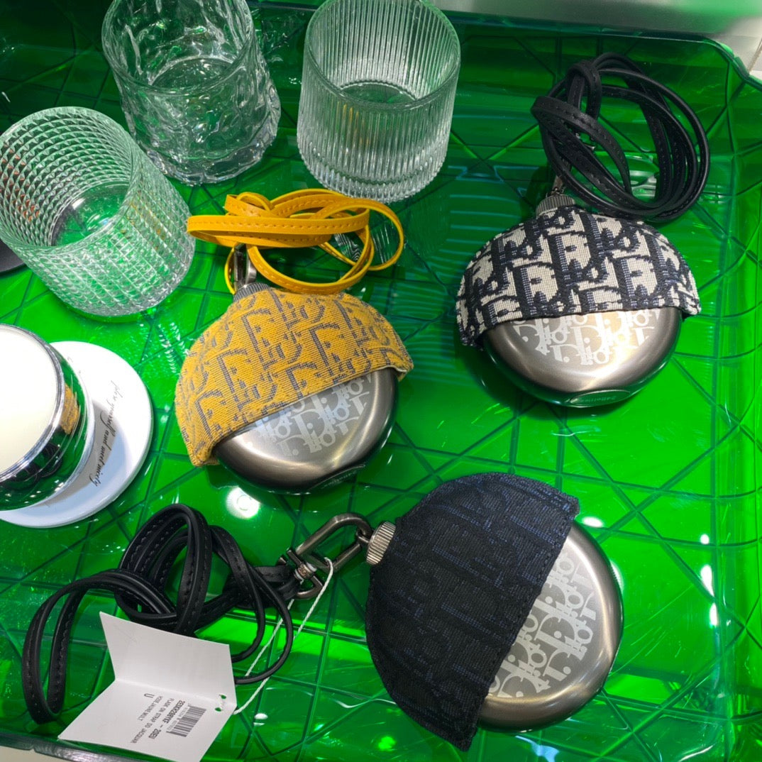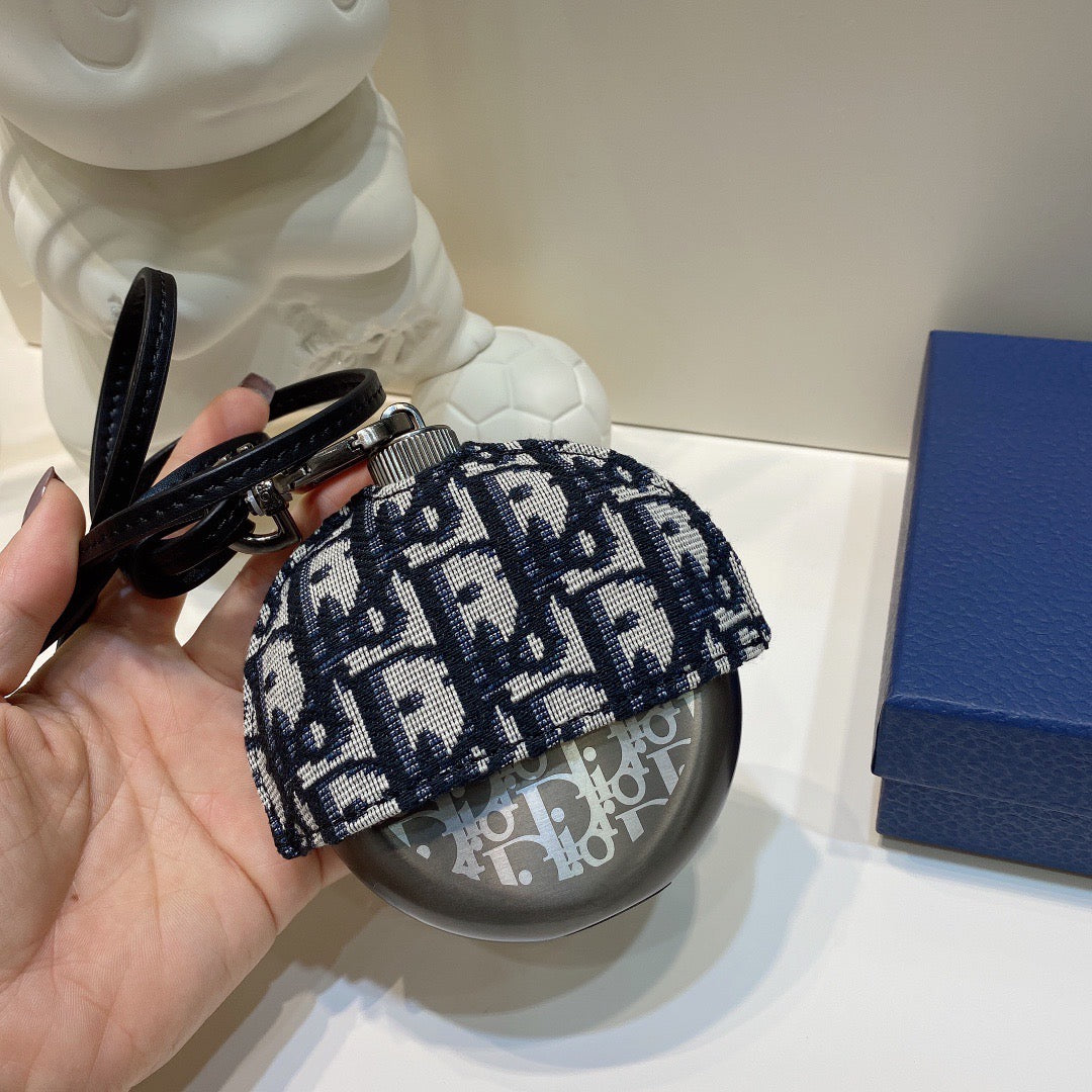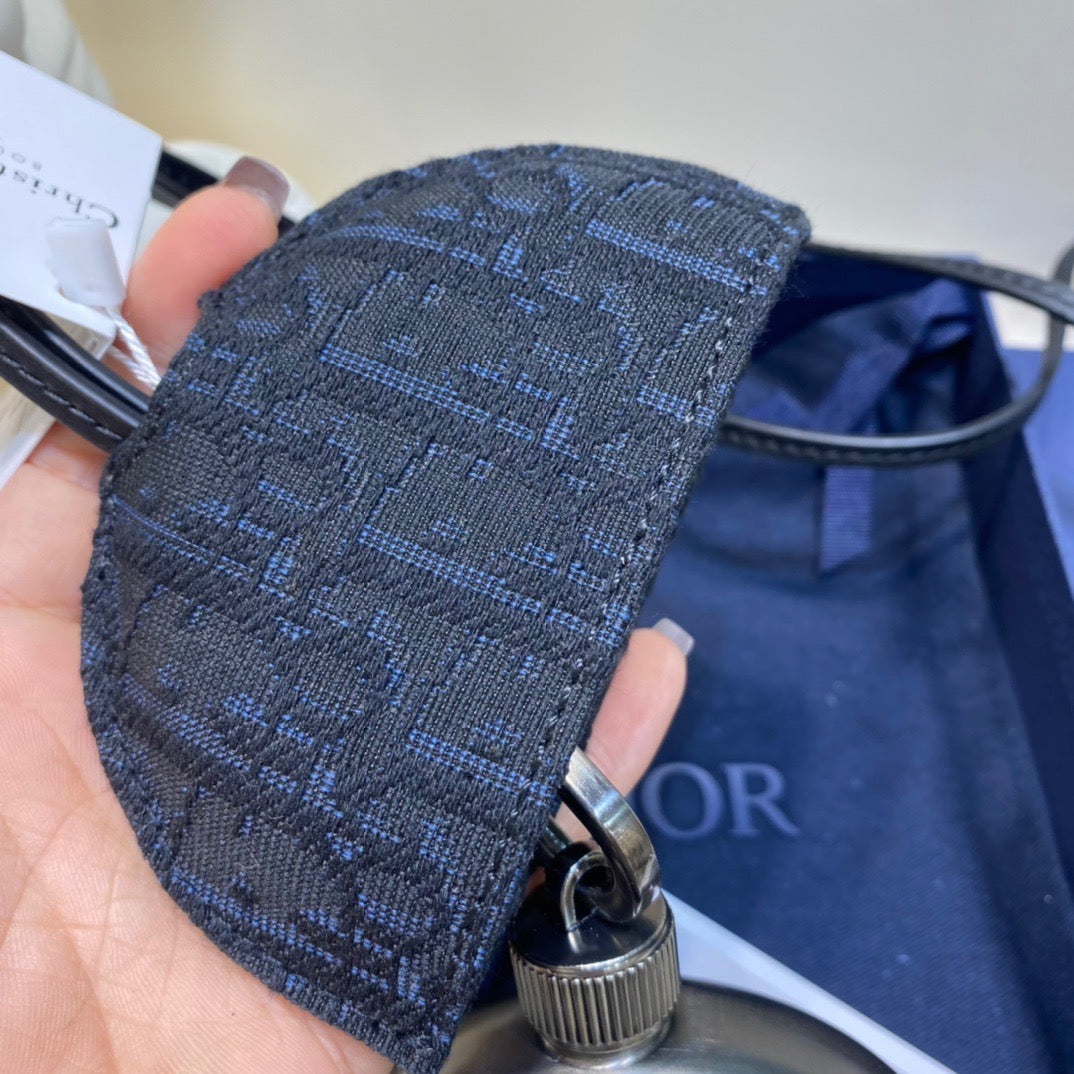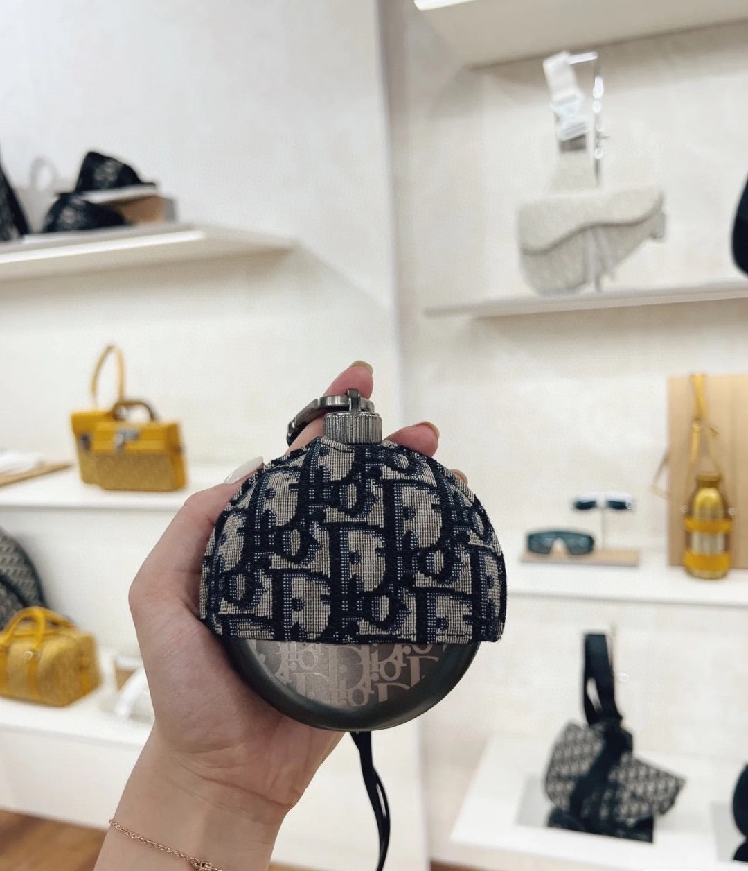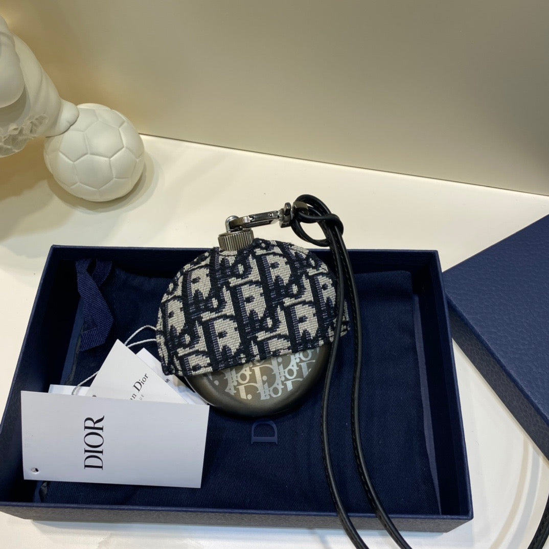The Dior Aqua flask is an exceptionally modern and elegant accessory. Crafted in stainless steel, the flask is enhanced by a black Dior Oblique jacquard holder. It can be attached to a belt loop thanks to the 'DIOR'-engraved ring, or worn around the neck with its removable smooth calfskin shoulder strap.