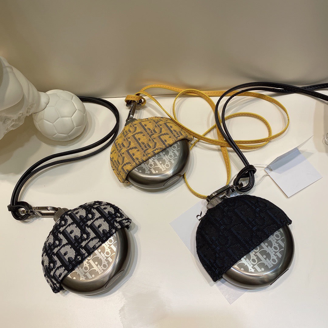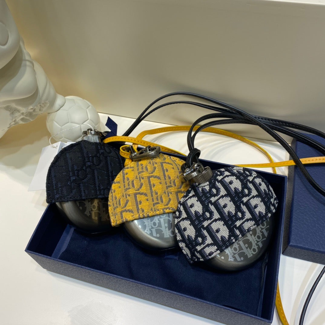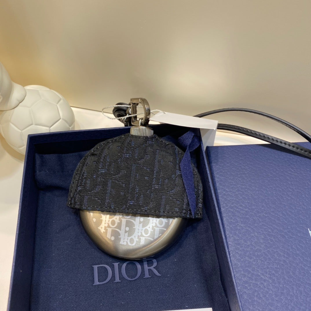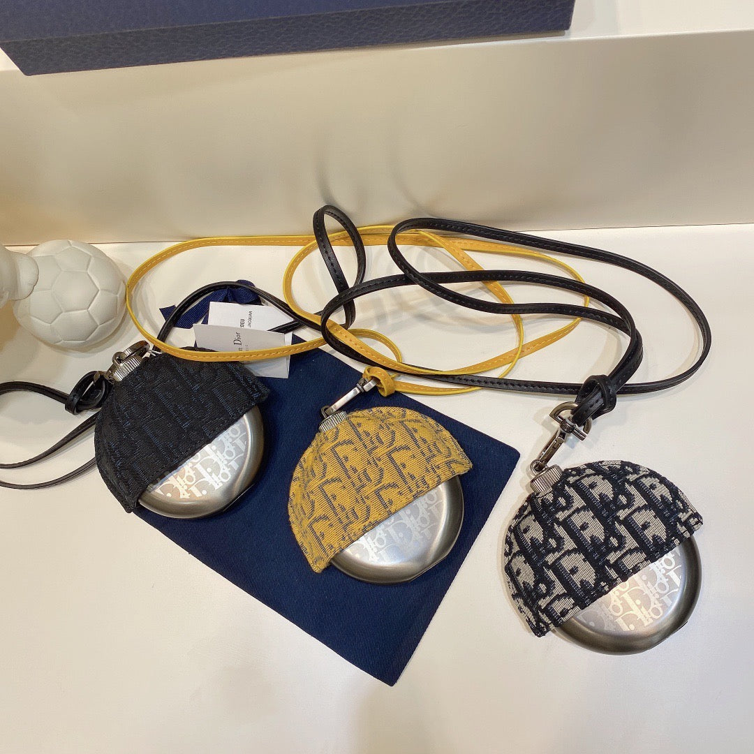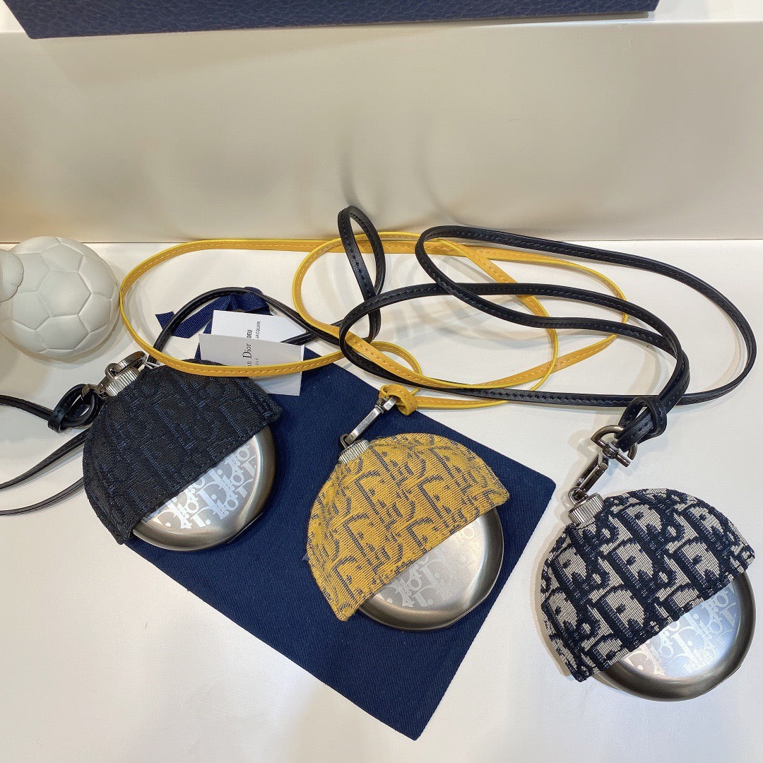 The Dior Aqua flask is an exceptionally modern and elegant accessory. Crafted in stainless steel, the flask is enhanced by a black Dior Oblique jacquard holder. It can be attached to a belt loop thanks to the 'DIOR'-engraved ring, or worn around the neck with its removable smooth calfskin shoulder strap.