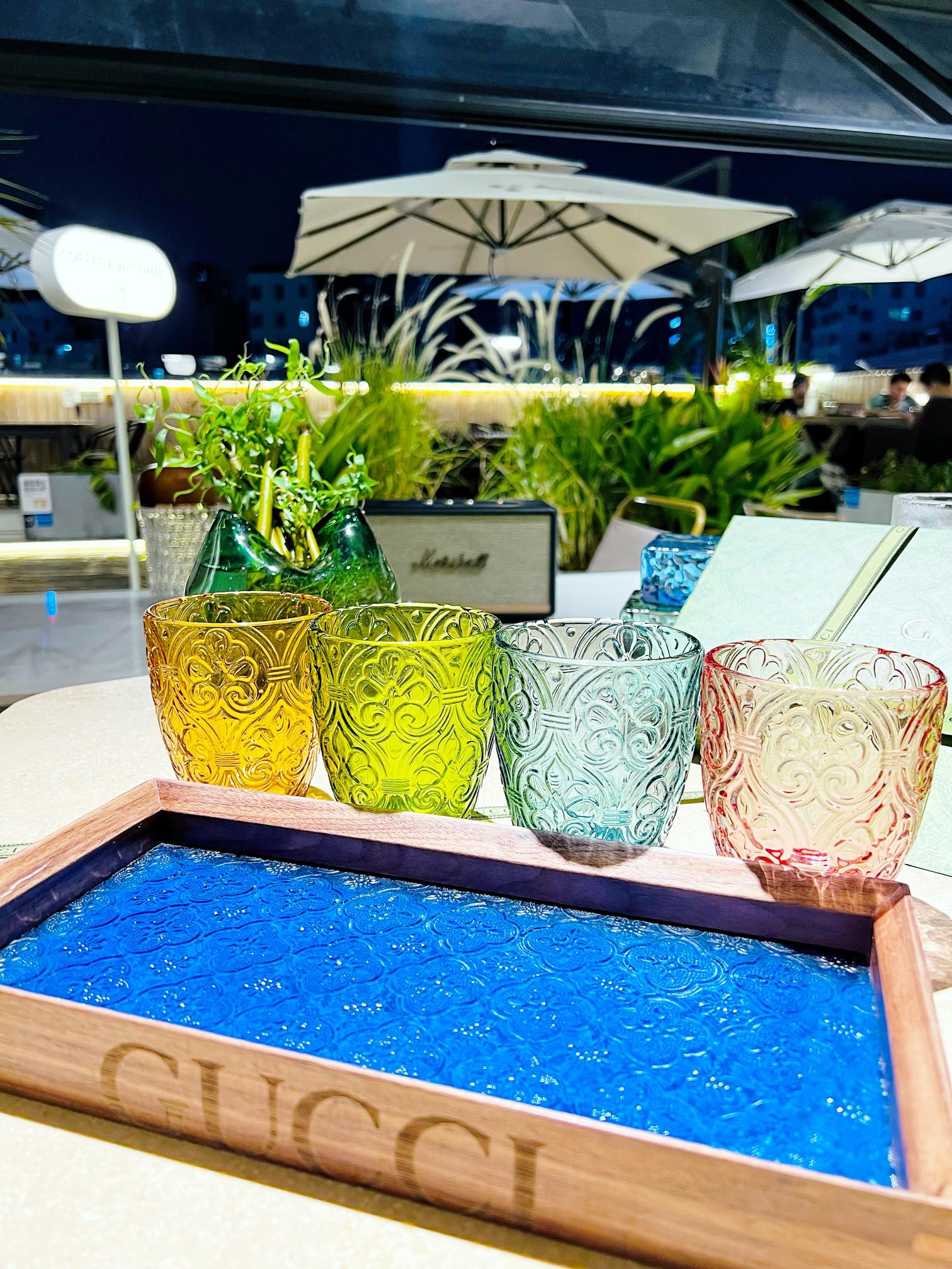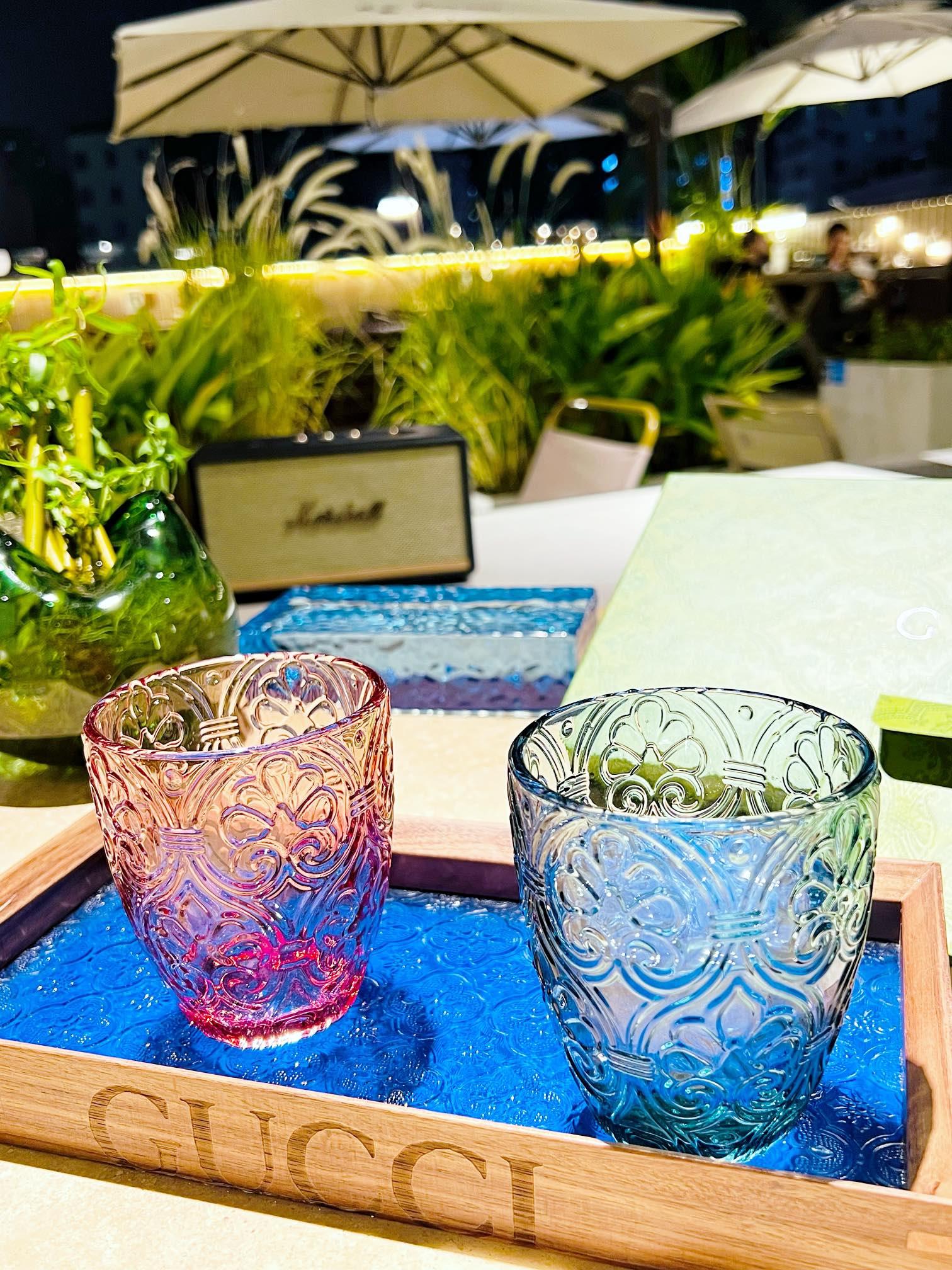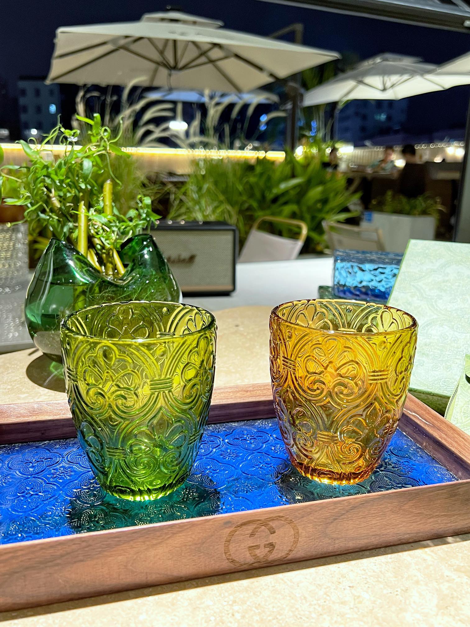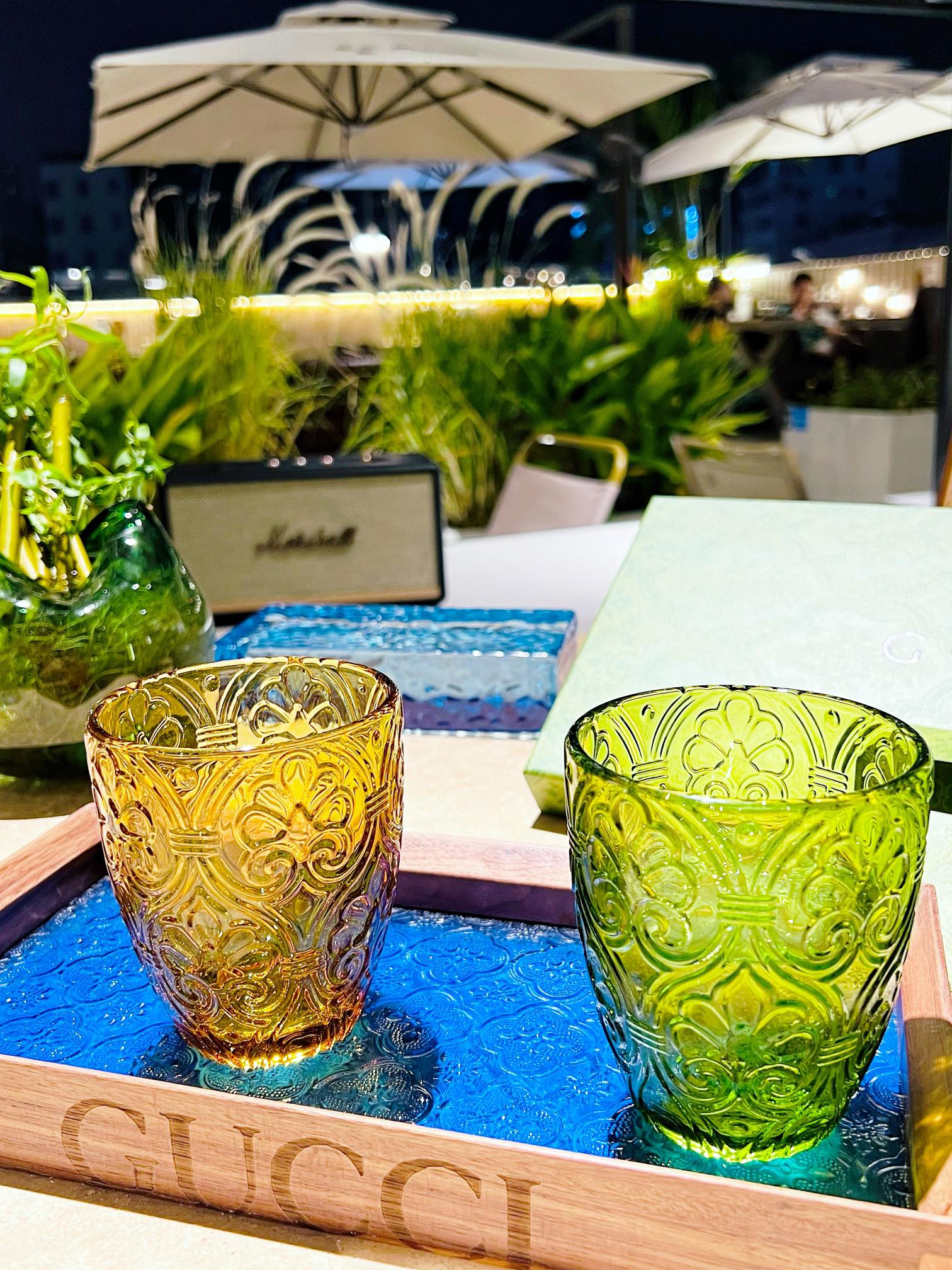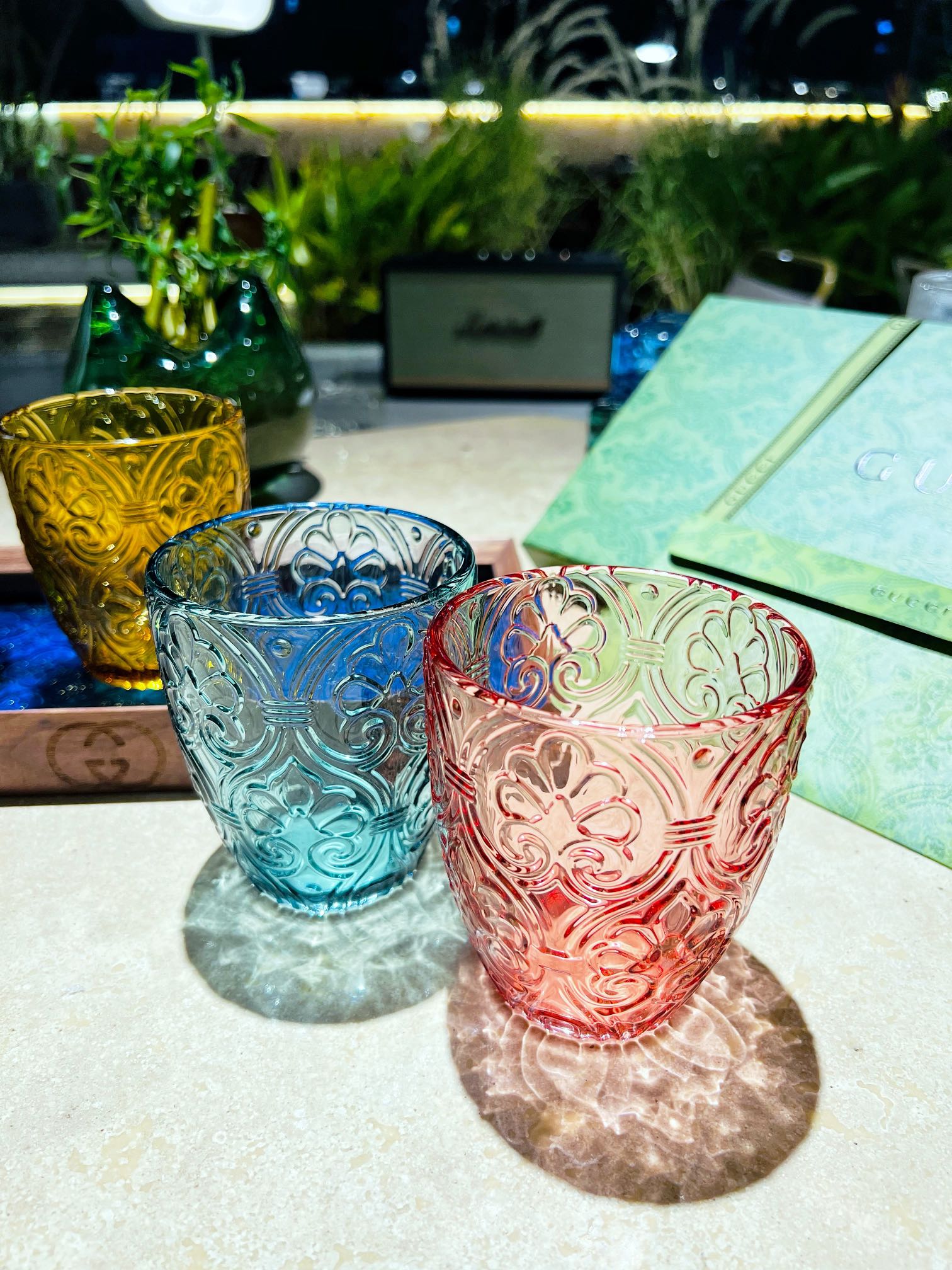 GUCCI GLASS AND TRAY SET is now available, giving you the chance to showcase everyday objects in its futuristic art style.