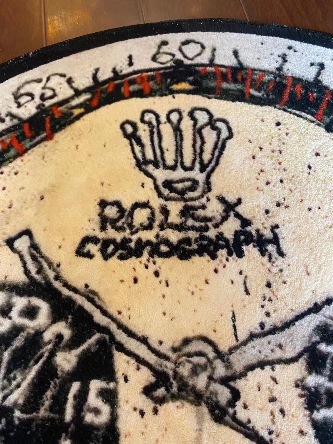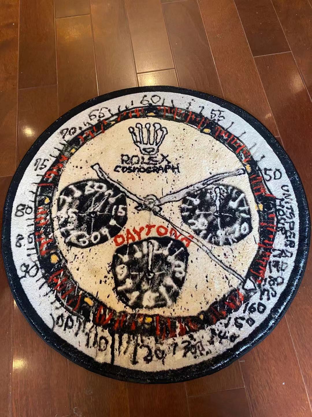 MADSAKI ROLEX "PAUL NEWMAN DAYTONA" RUG is now available in three sizes, giving you the chance to add some colours to your room. This bright piece will definitely elevate your room to the next level.