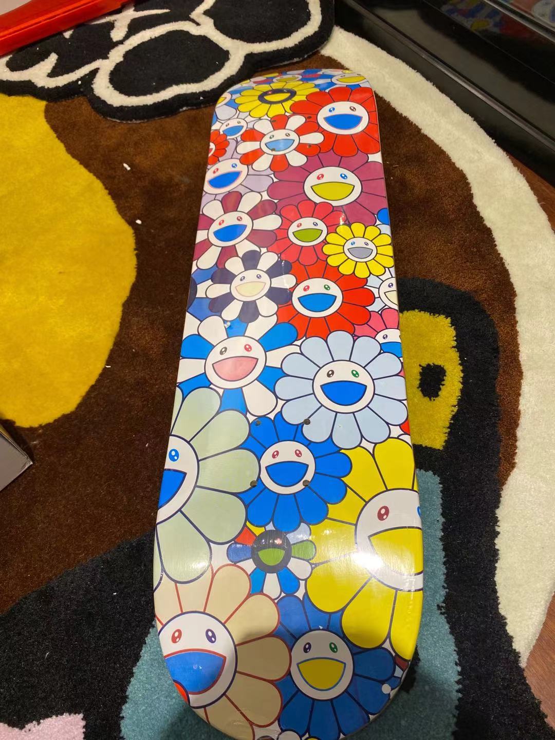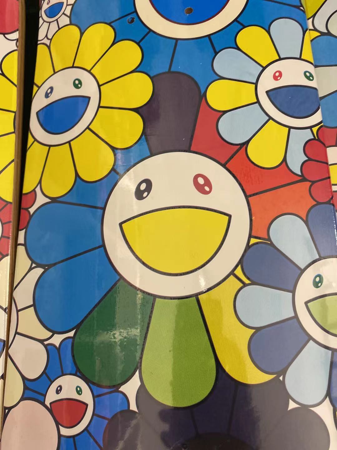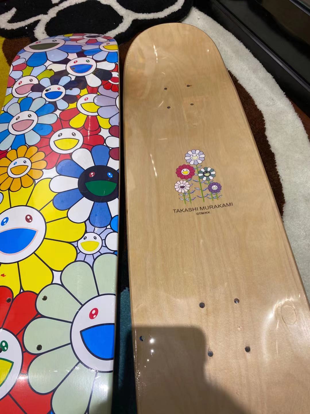 MURAKAMI FLOWER SKATEBOARD DECKS SET features an all-over print of Murakami's iconic flowers which continues its design from one skateboard deck to another.