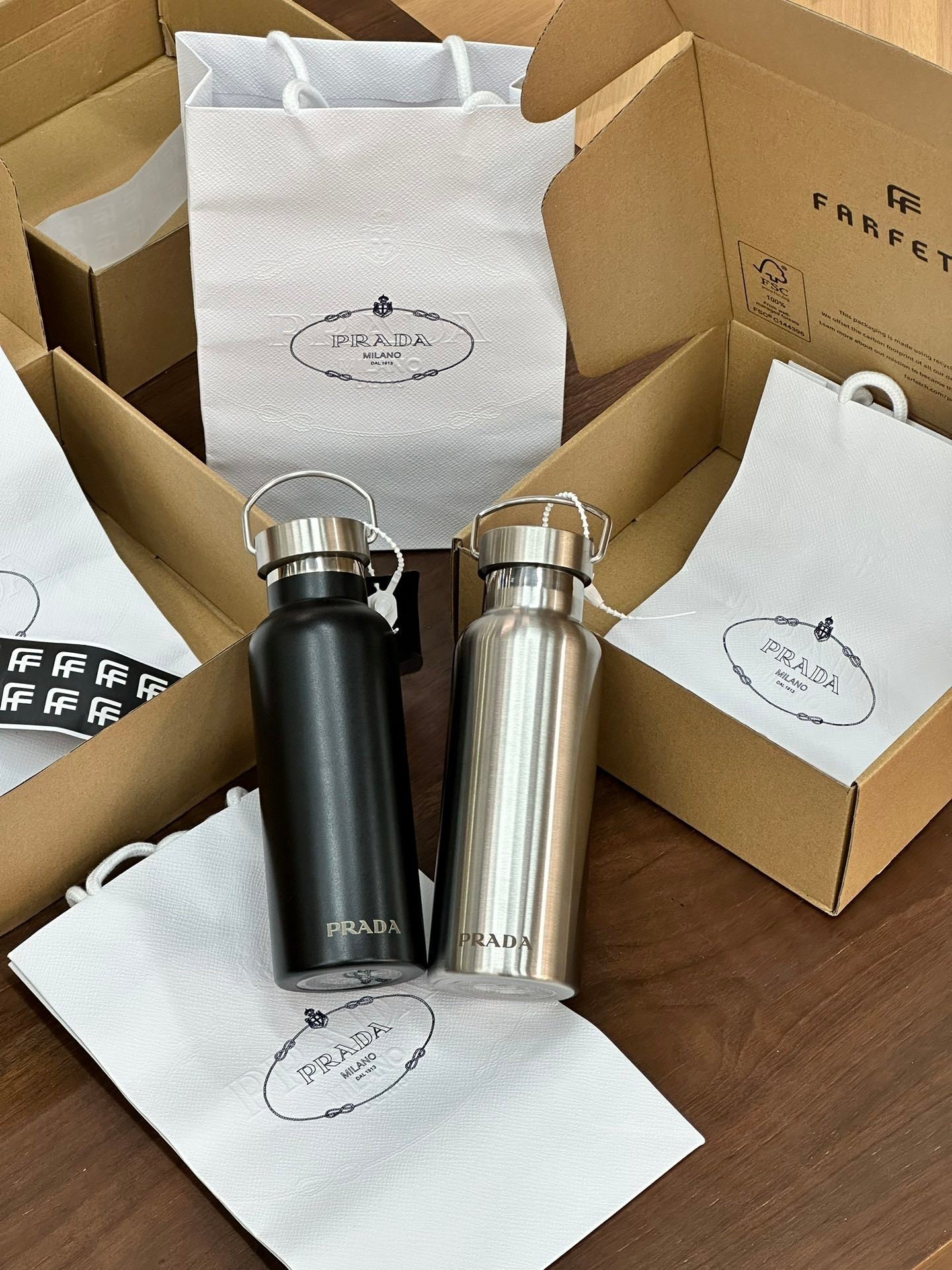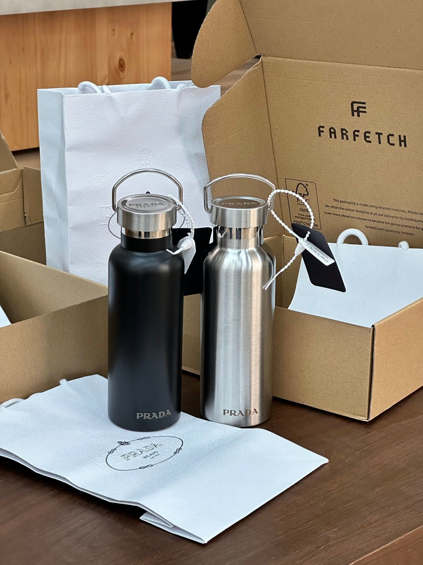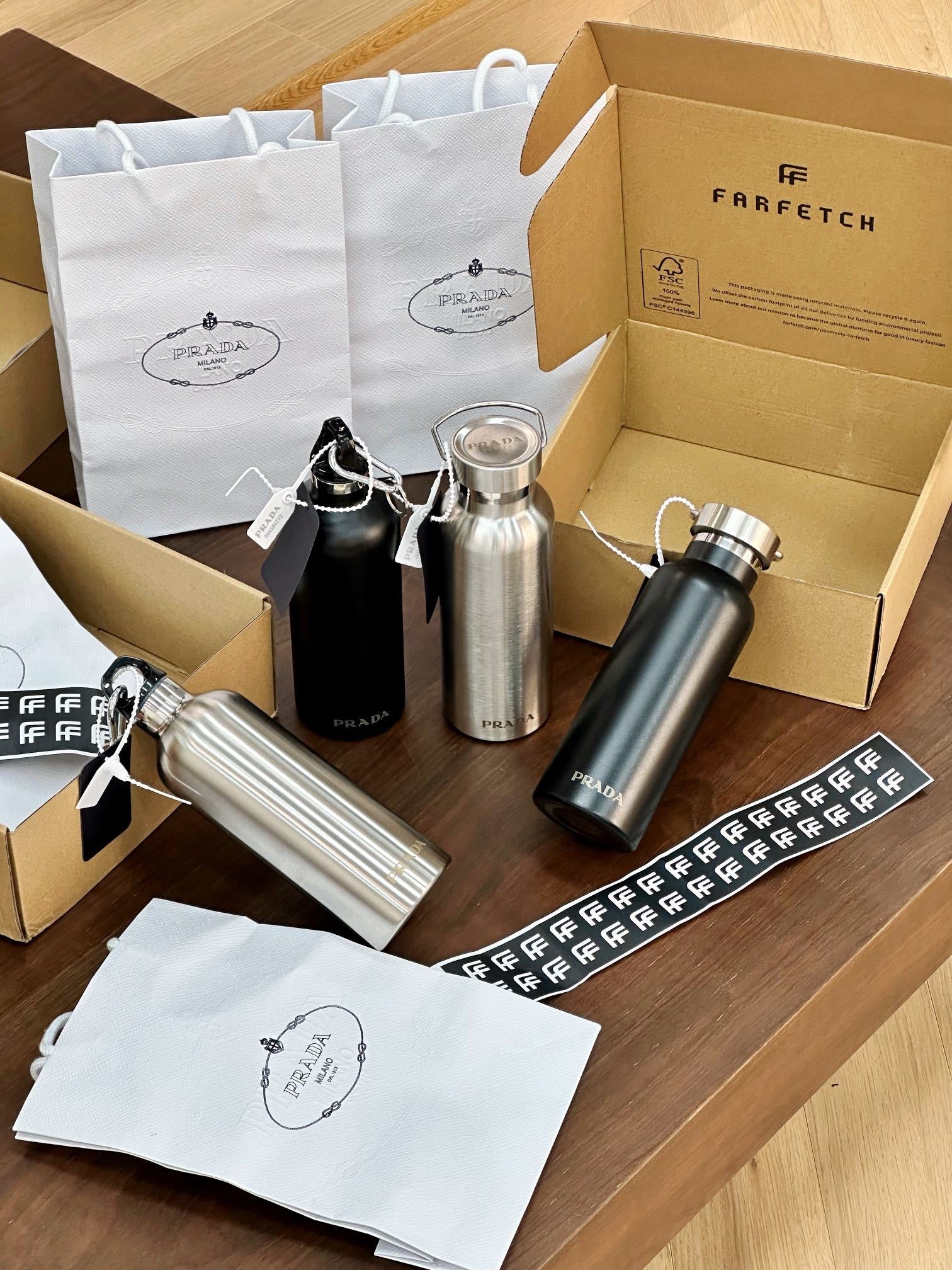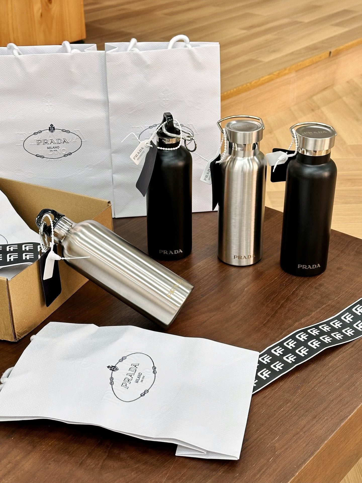PRADA STAINLESS STEEL BOTTLE 2.0 is now available for you to drink in style - you know the vibes.