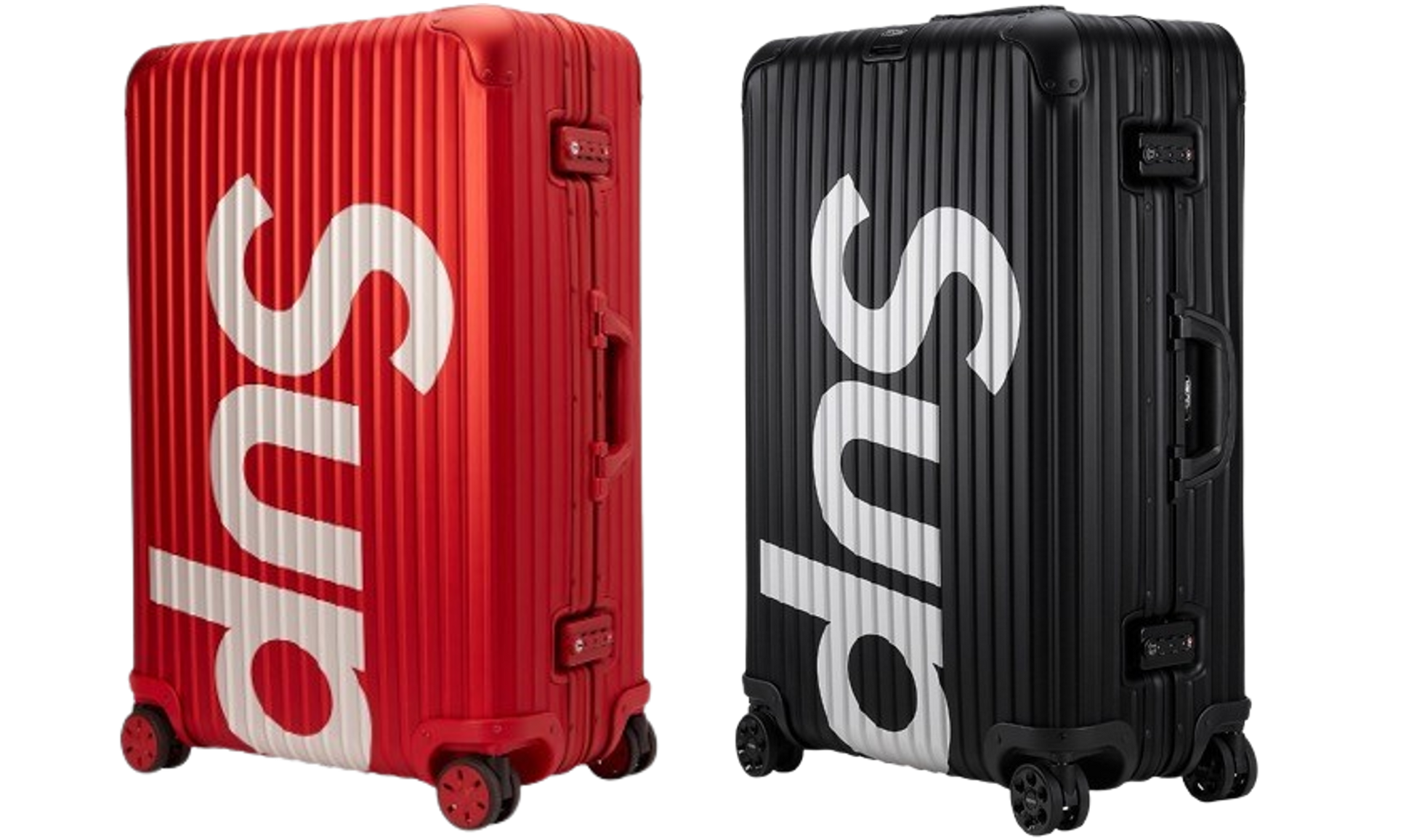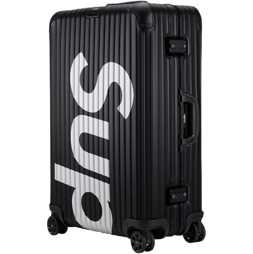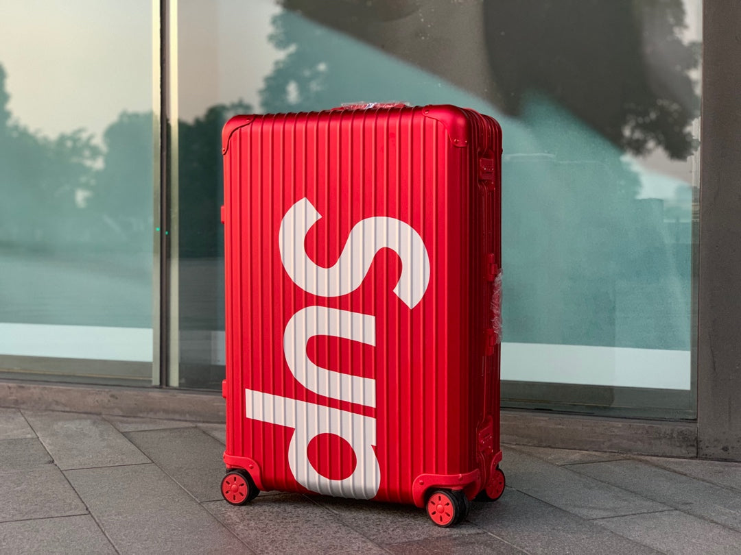 SUPREME x RIMOWA TOPAS LUGGAGE 82L is now available in two colourway, RED and BLACK: