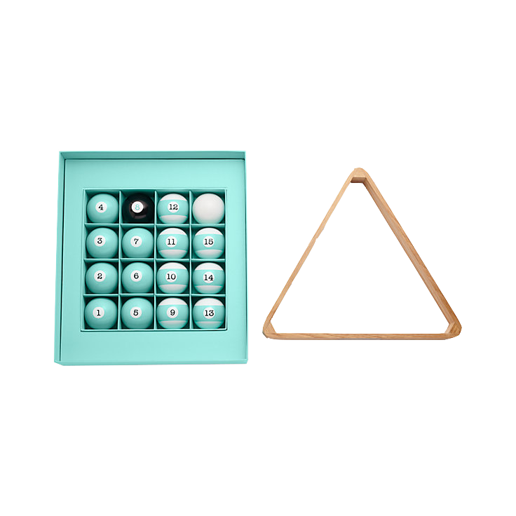 Adding a touch of Tiffany to any game room, this pool triangle and ball set is a modern upgrade on the classic design.