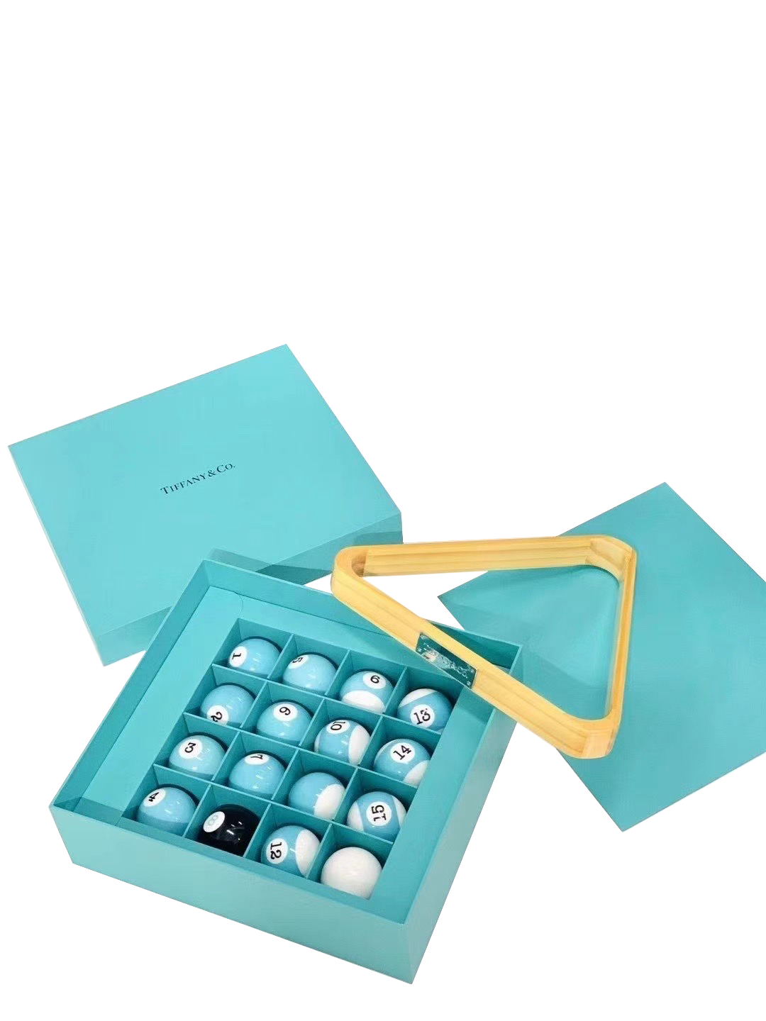 16 pool balls in Tiffany Blue