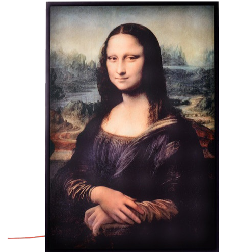 MONA LISA BACKLIT ART FRAME is now available in two sizes, paying homage to the original Mona Lisa iconic painting by Leonardo Da Vinci. This is a version that balances along the boundary between function and art.