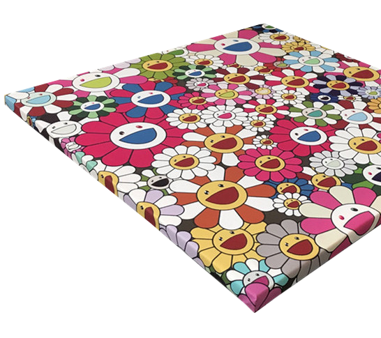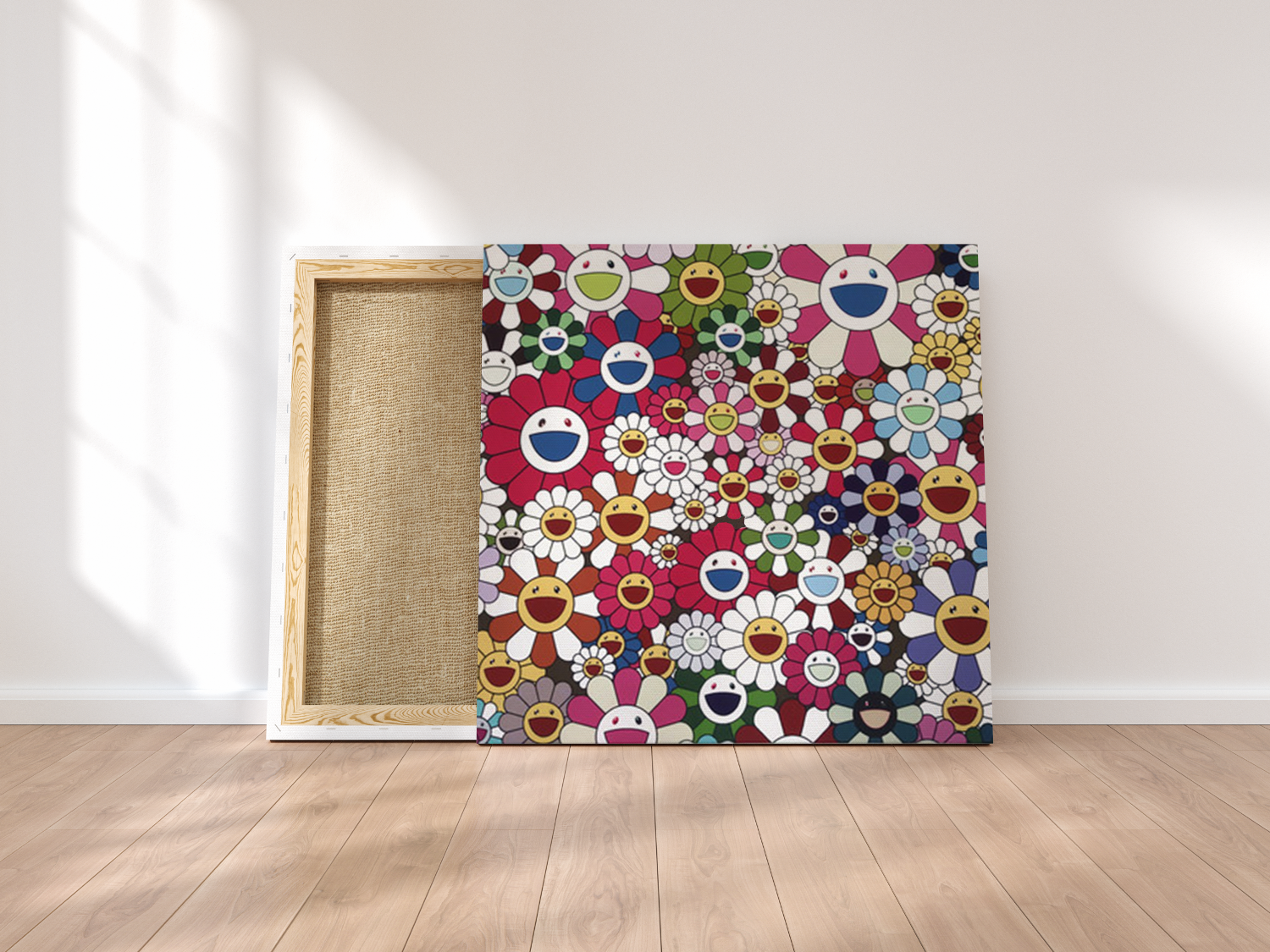 This canvas print features his iconic Murakami flowers that are celebrated for their display of joy and innocence.